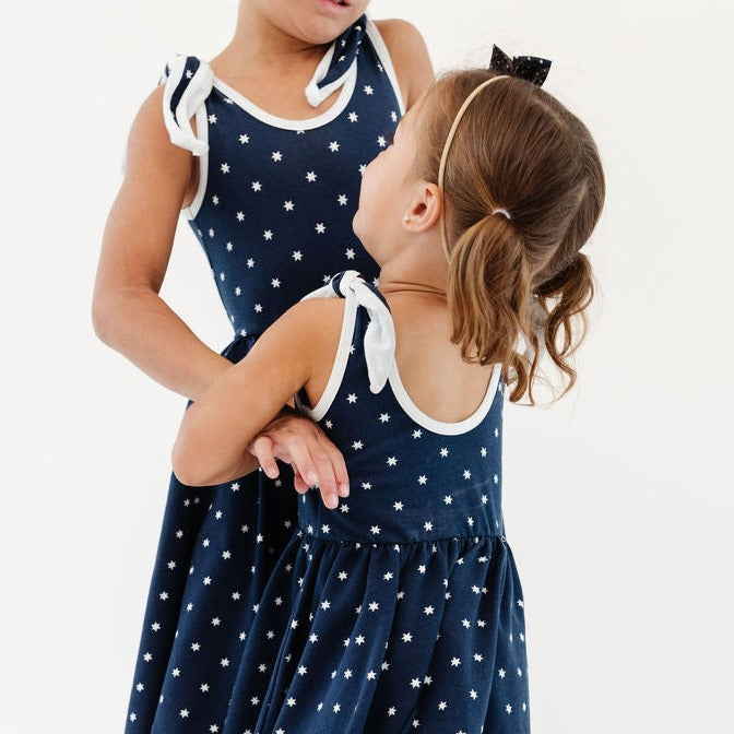 Complete with faux shoulder ties and our classic twirly skirt, the Bow Tank Ballet Dress is designed to add a touch of grace and playfulness to your little one's wardrobe. She'll love the way this dress combines style, comfort, and versatility.