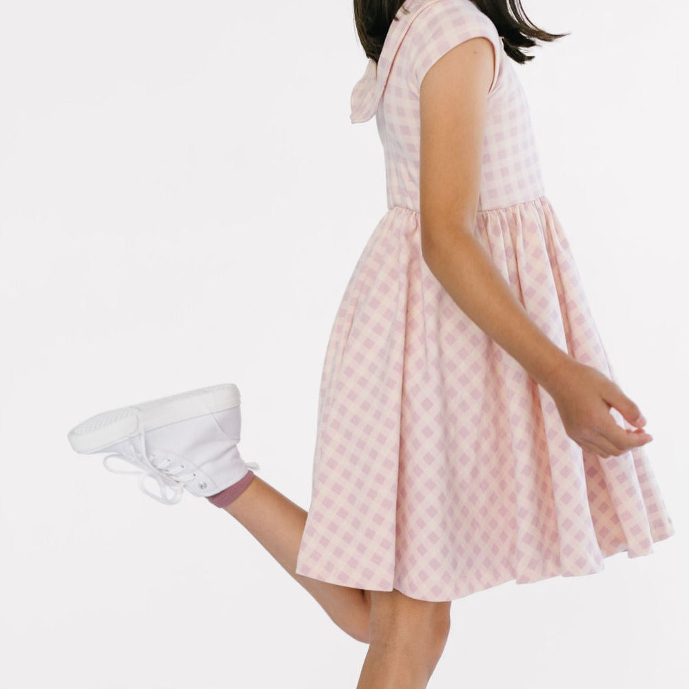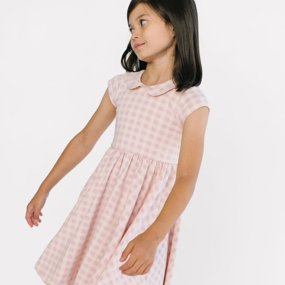 The dress that started it all, now with the cutest Peter Pan collar. Our signature stretchy-soft fabric, circle skirt, and scooped back becomes an instant staple in her closet.Â