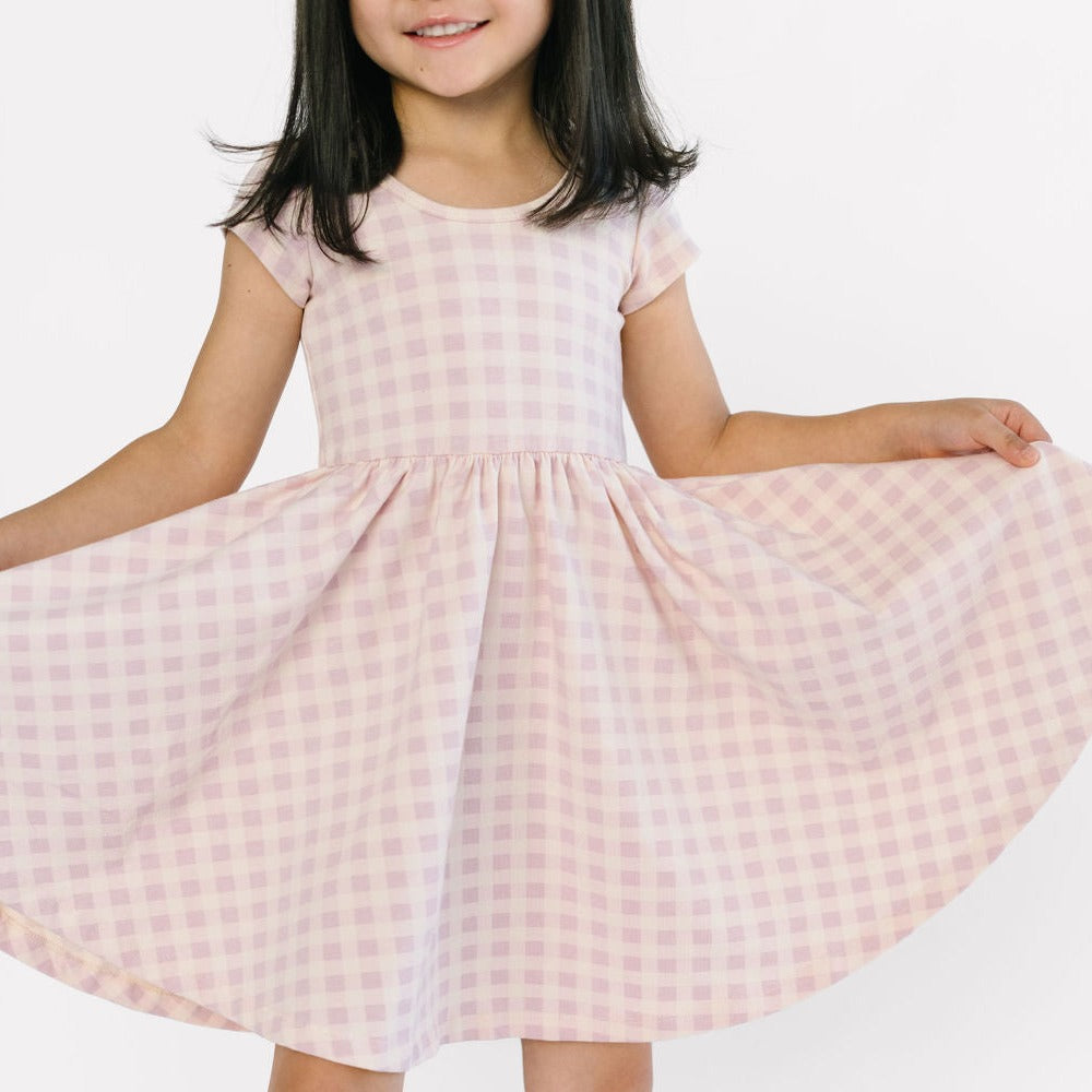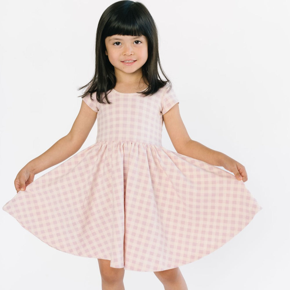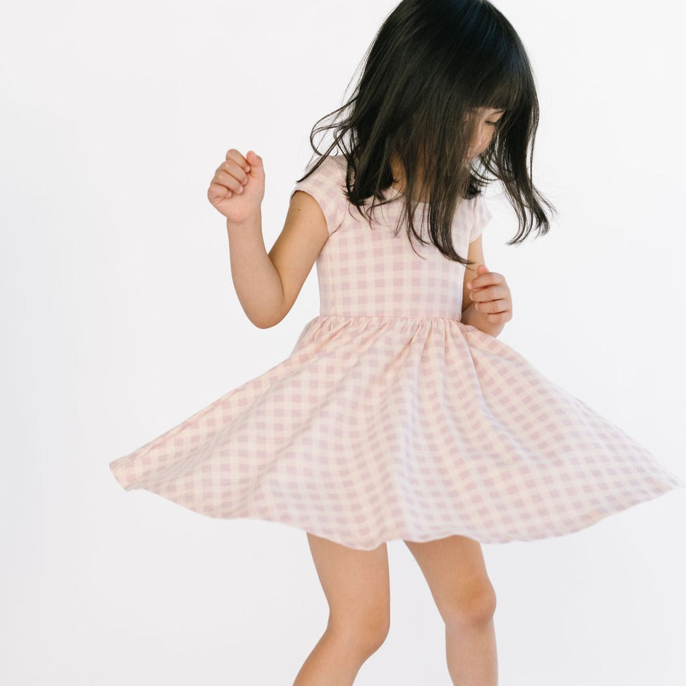 The dress that started it all because of its famous twirl - but with a shorter, flowy sleeve for summer time. Our signature stretchy-soft fabric, circle skirt, and scooped back will become an instant staple in her closet.