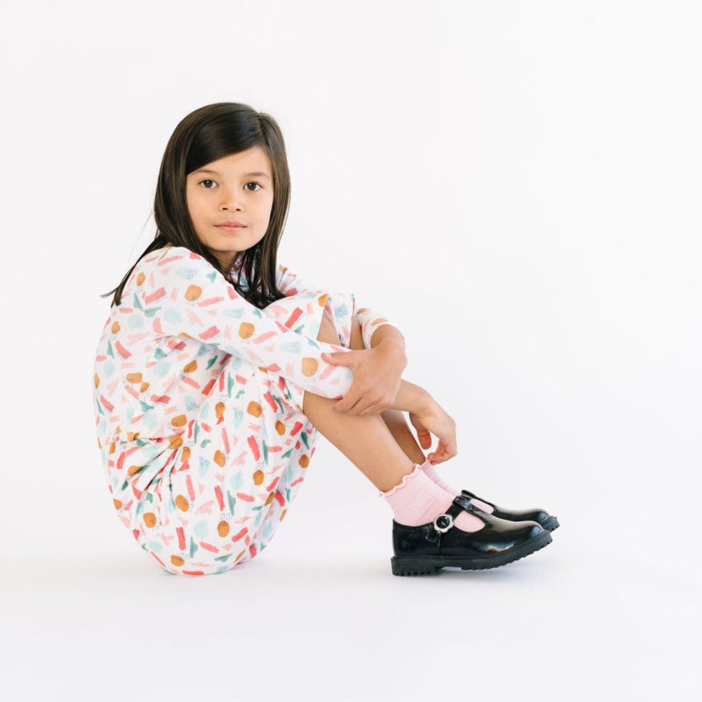 Calling all monkey bar lovers! This jumpsuit is for you. Featuring our signature low scoop back for easy slip-on, a comfy elastic waistline, and custom printed fabric using our favorite cozy cotton stretch. Pair with some classic rain boots, or pair with bare feet, there's really no wrong way to wear the jumpsuit.