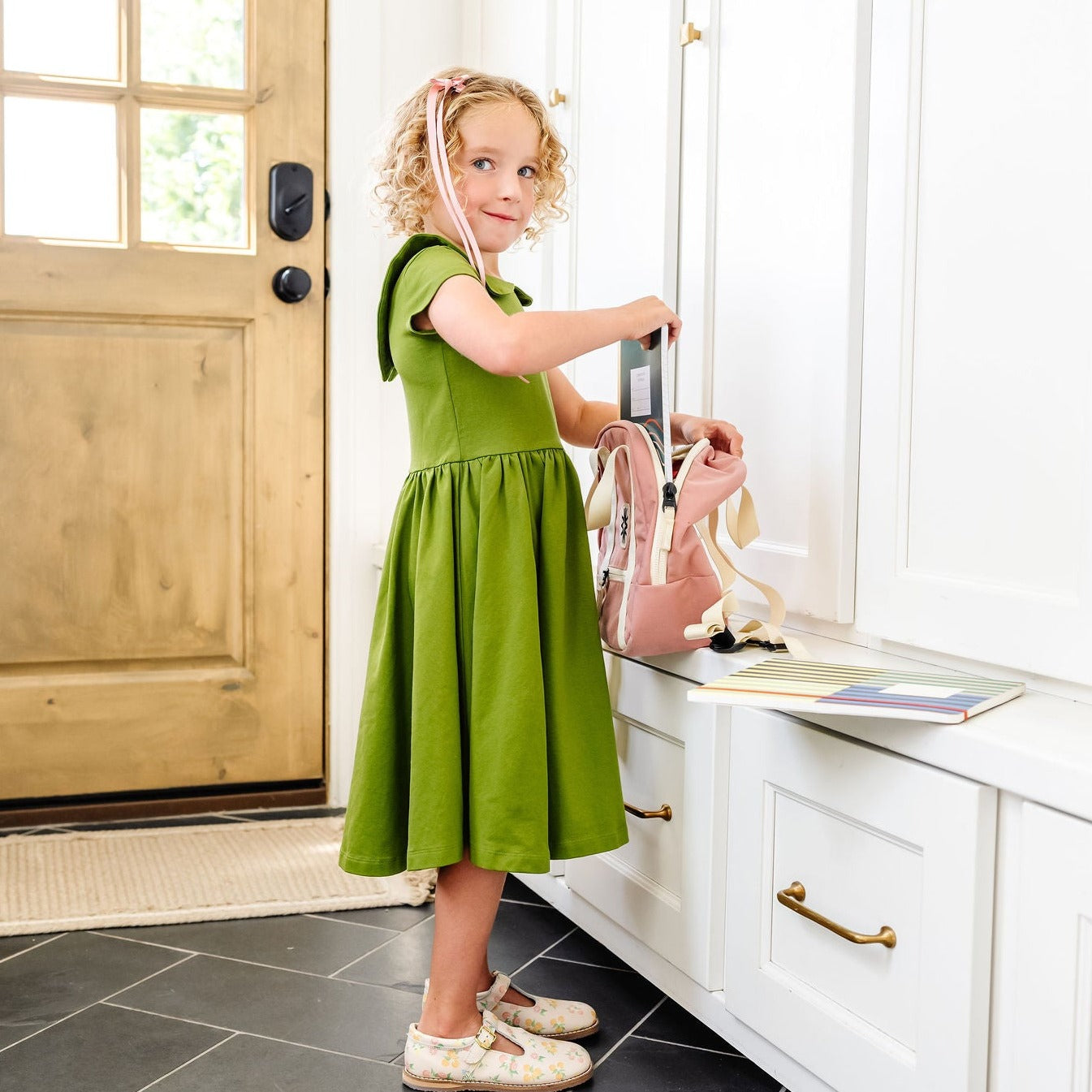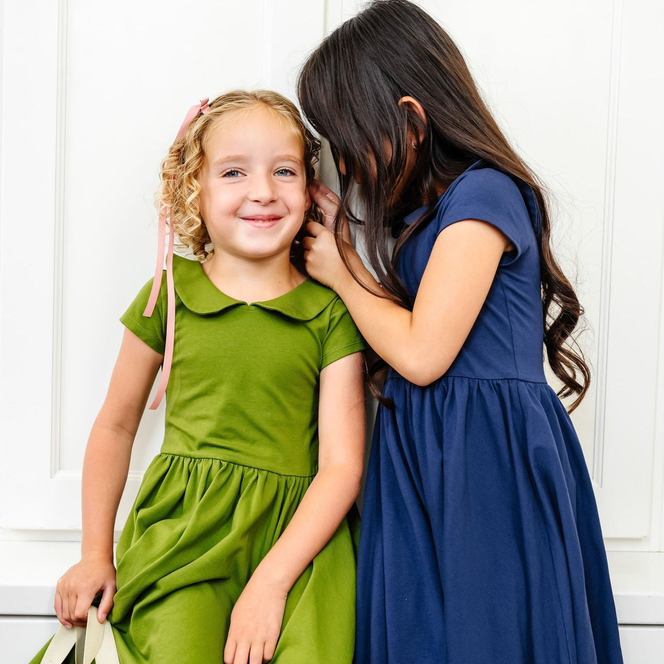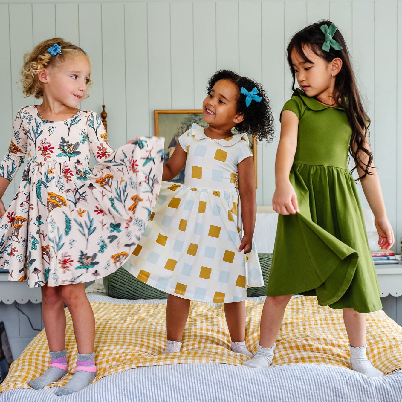The dress that started it all, now with the cutest Peter Pan collar. Our signature stretchy-soft fabric, circle skirt, and scooped back becomes an instant staple in her closet.Â