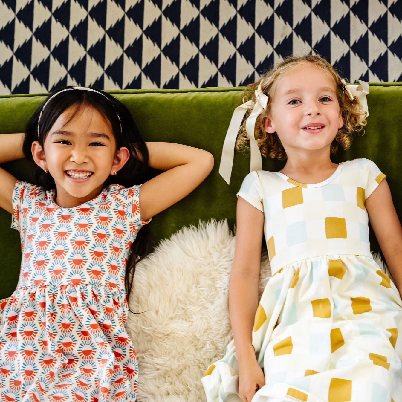 The dress that started it all because of its famous twirl‚ but with a shorter, flowy sleeve for summer time. Our signature stretchy-soft fabric, circle skirt, and scooped back will become an instant staple in her closet.