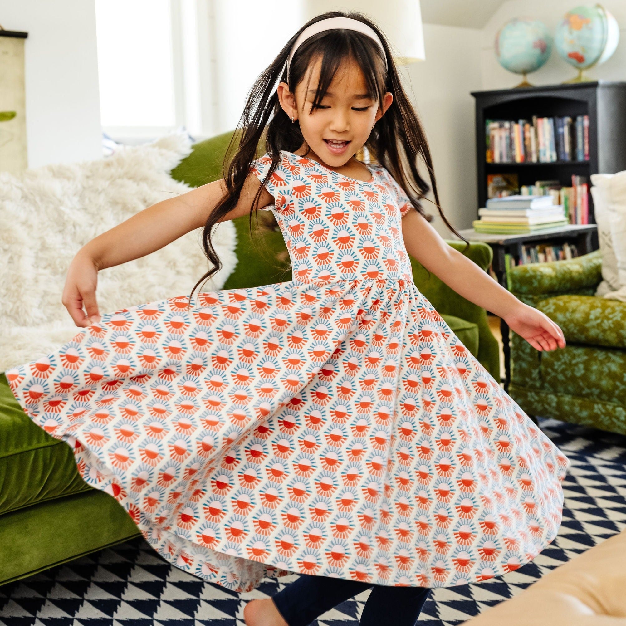 The dress that started it all because of its famous twirl‚ but with a shorter, flowy sleeve for summer time. Our signature stretchy-soft fabric, circle skirt, and scooped back will become an instant staple in her closet.