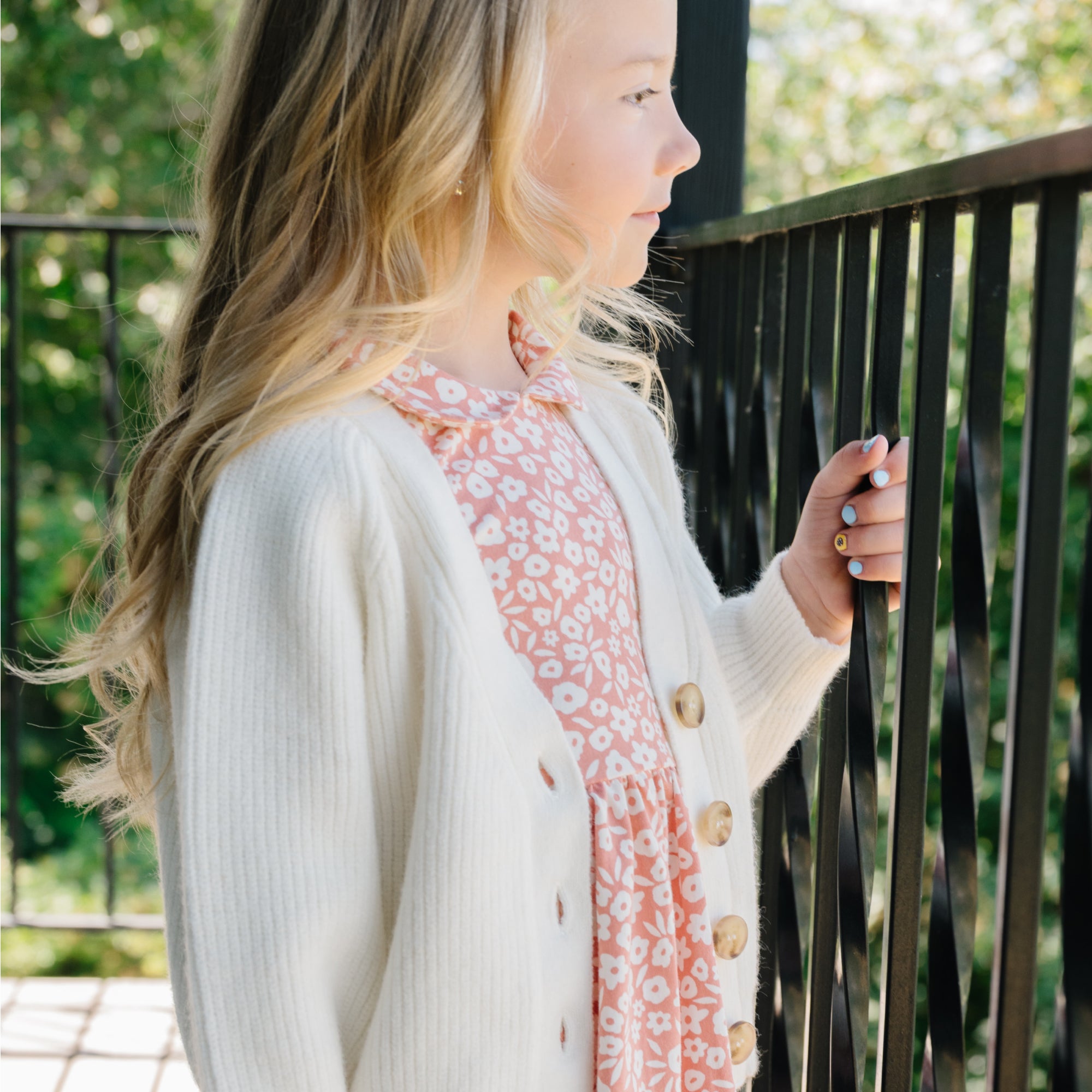 Your sweetheart will be cute and cozy in our brand-new button-up sweater, which is as easy to put on as it is to love thanks to the v-neck design. Bundling up never looked more adorable.