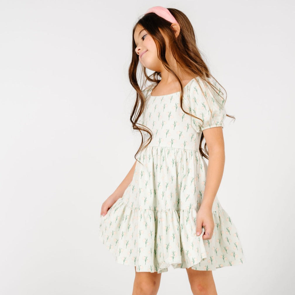 The same twirl factor as our Ballet Dress, but with a playful puff sleeve, squared neckline, and tiered skirt to make it a little more formal - perfect for any princess!