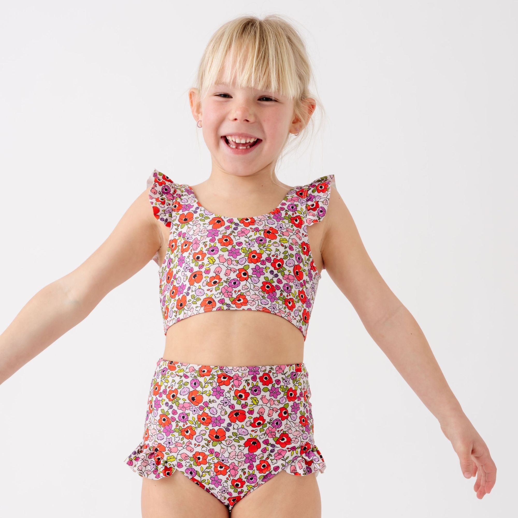 Make a splash at the pool or beach with this adorably frilled bathing suit. Made of 80% recycled polyester, you can feel just as good about her wearing it as it looks.