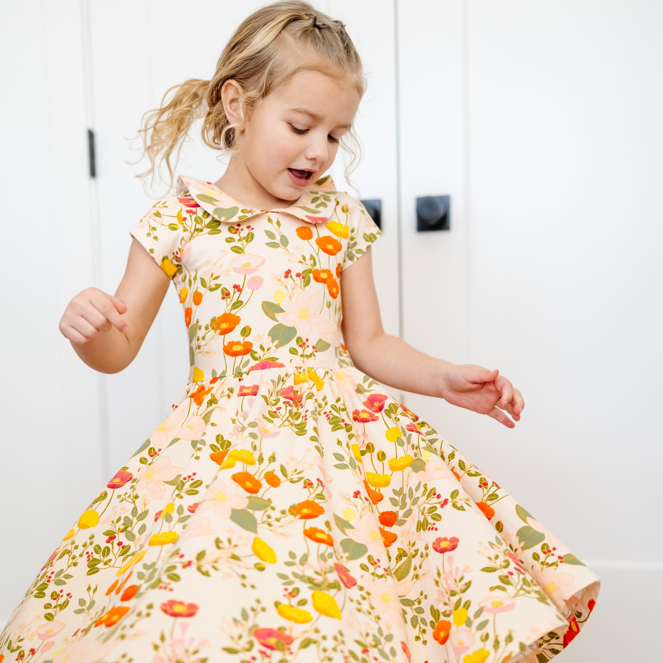 The dress that started it all, now with the cutest Peter Pan collar. Our signature stretchy-soft fabric, circle skirt, and scooped back becomes an instant staple in her closet.
