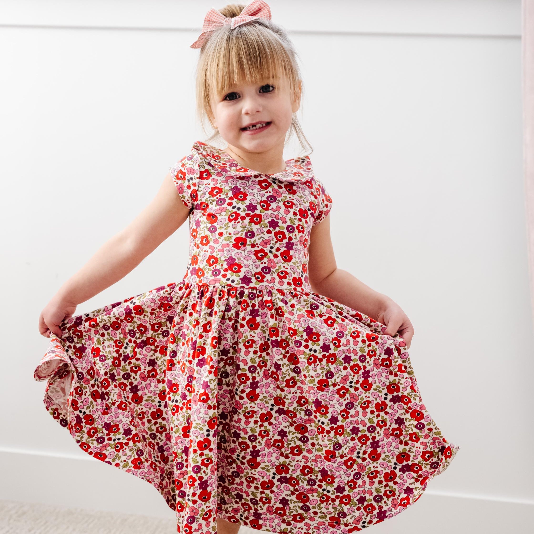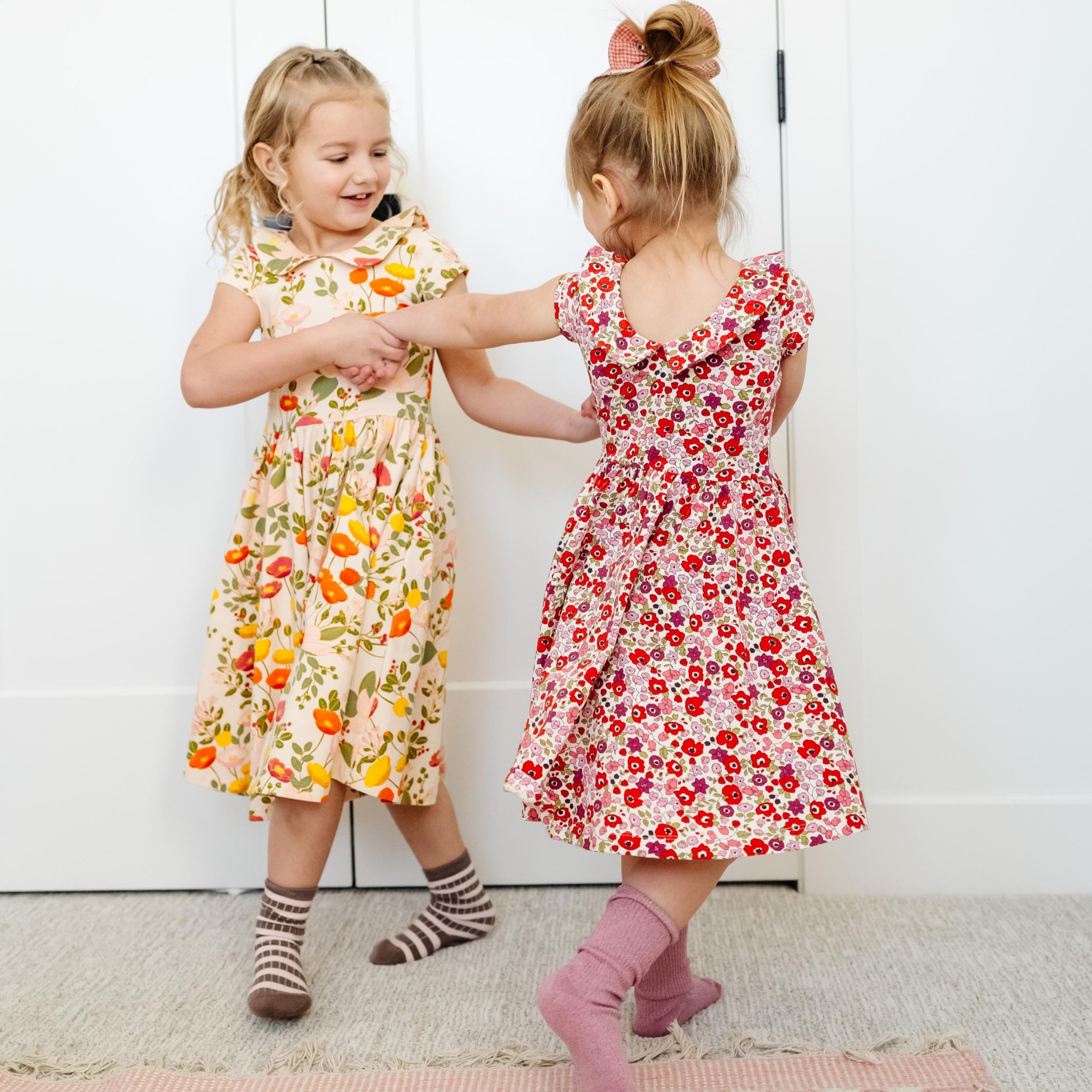 The dress that started it all, now with the cutest Peter Pan collar. Our signature stretchy-soft fabric, circle skirt, and scooped back becomes an instant staple in her closet.