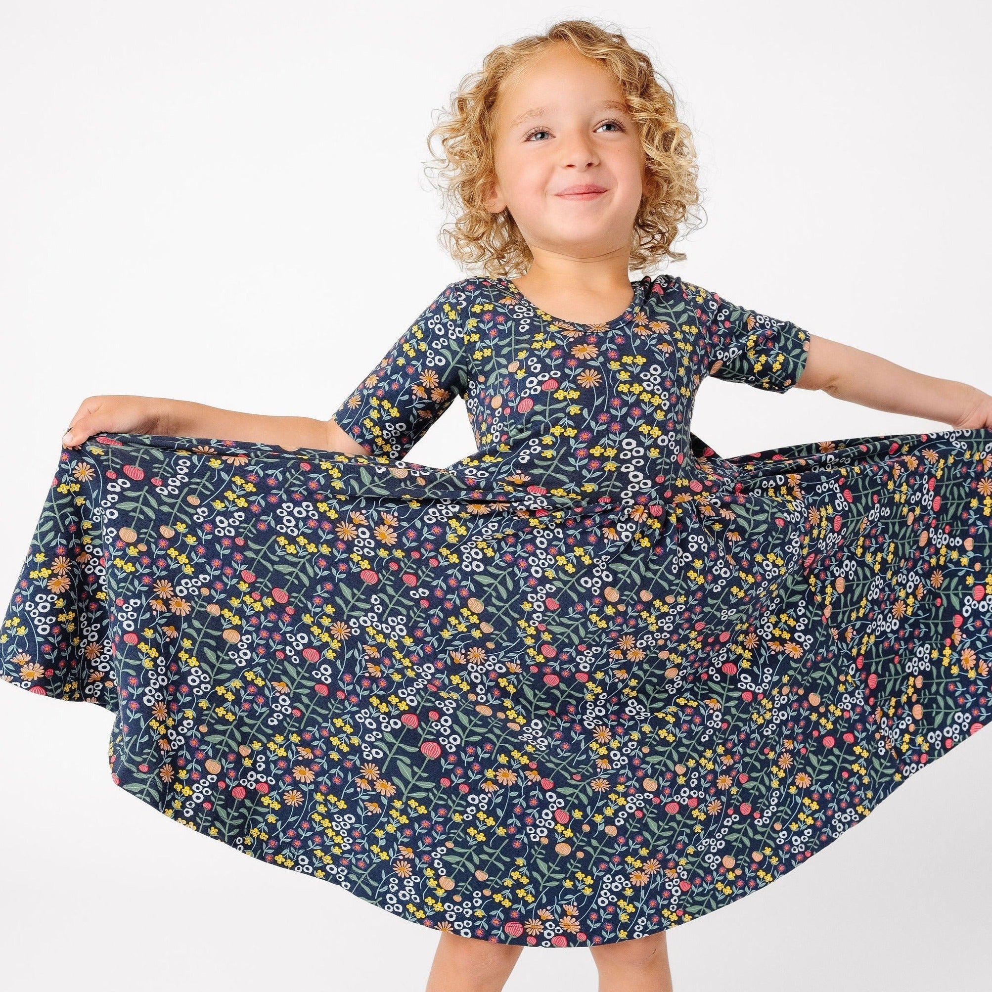 The dress that started it all because of its famous twirl. Our signature stretchy-soft fabric, circle skirt, and scooped back becomes an instant staple in her closet.