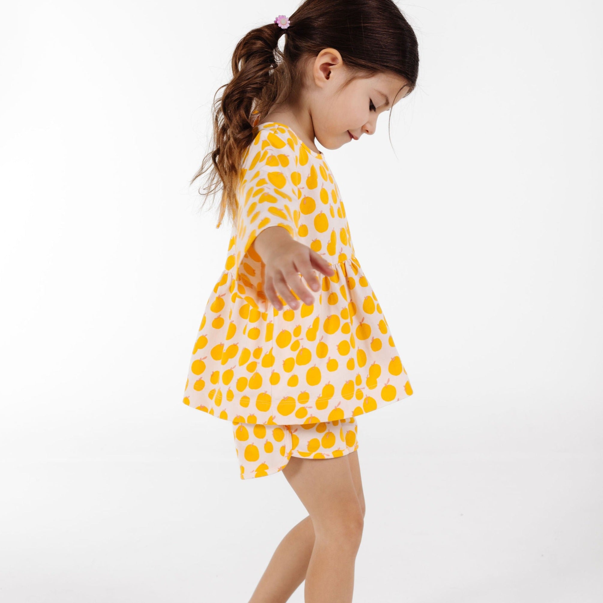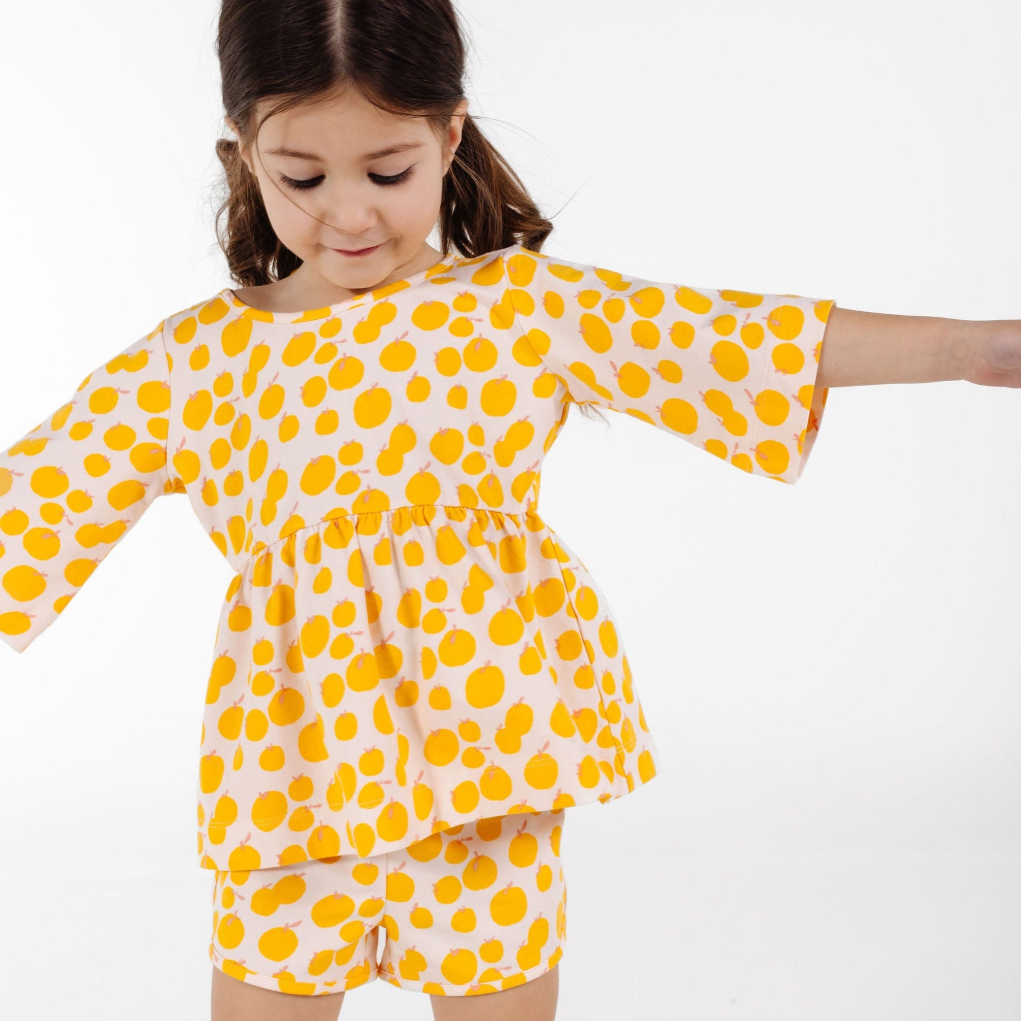 We love the carrots print! Super cute! Playsuits are comfortable and flattering. Lasts through regular washes for years (hang dry). The shorts run small/short if your kiddo is tall like mine but the top is flowy TTS.