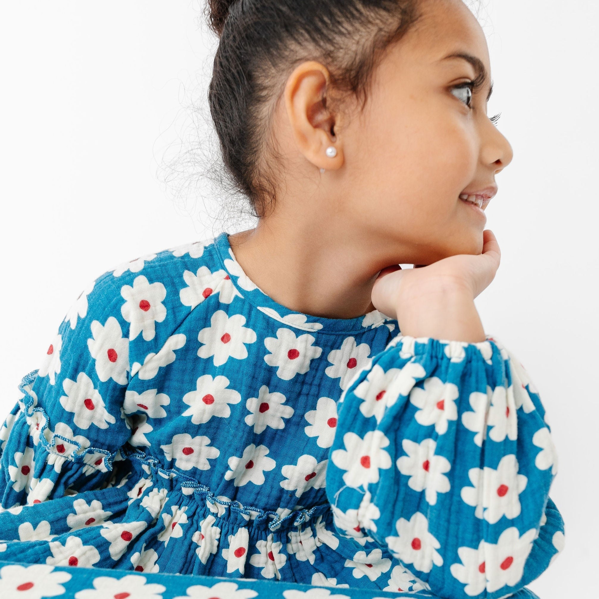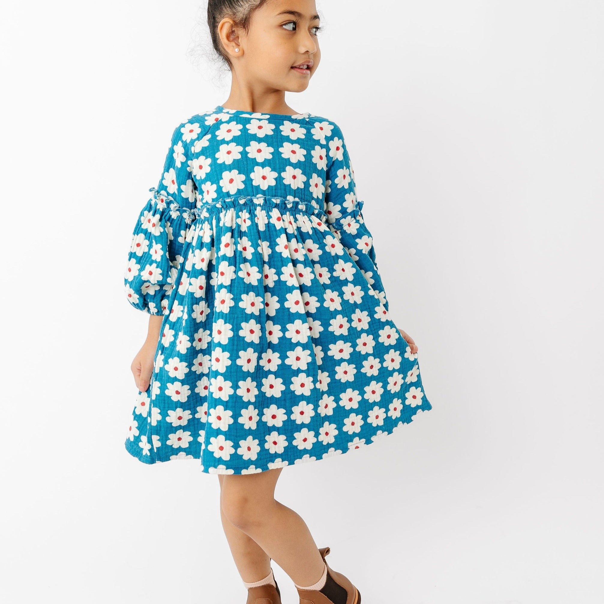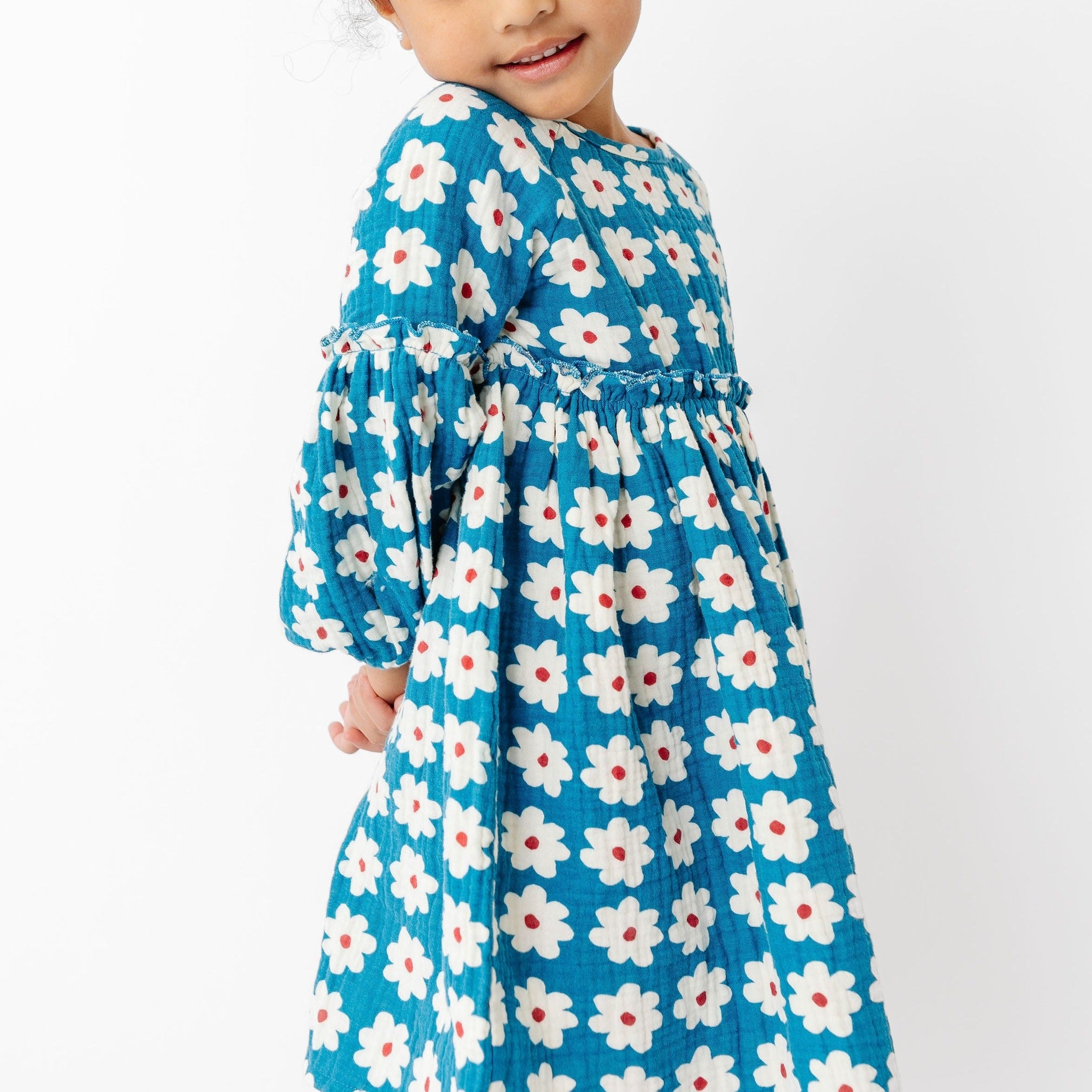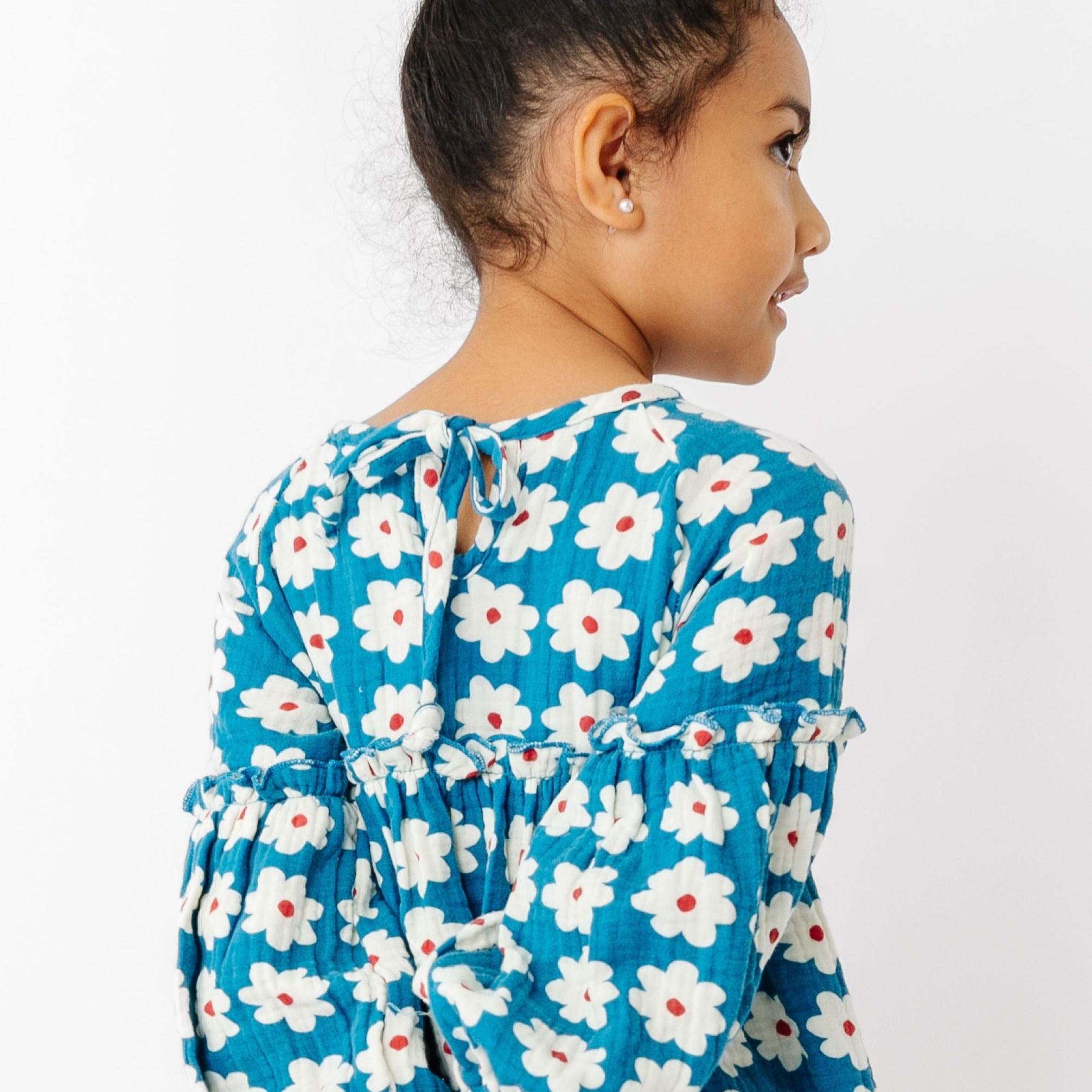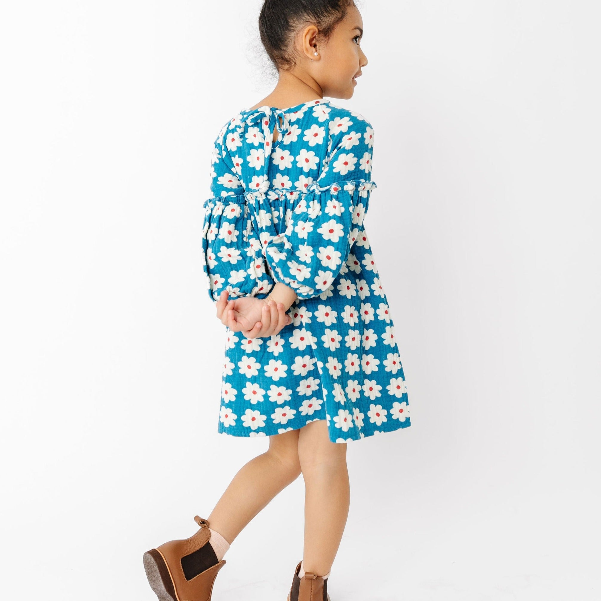 This dress is the perfect transition piece from summer to fall and beyond! Featuring ruffled details, puffed sleeves, a keyhole tie at the back, and made of 100% cotton, the Bodie Dress will have her ready to hit the classroom, park, lunch spot, or even just the couch in no time.