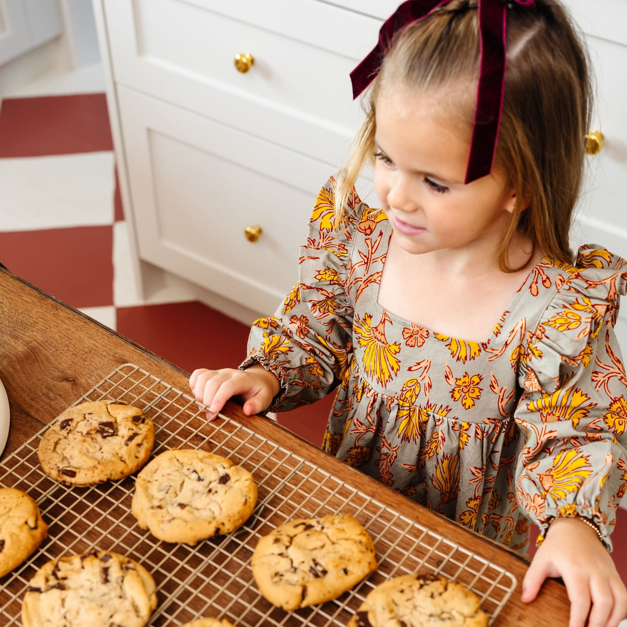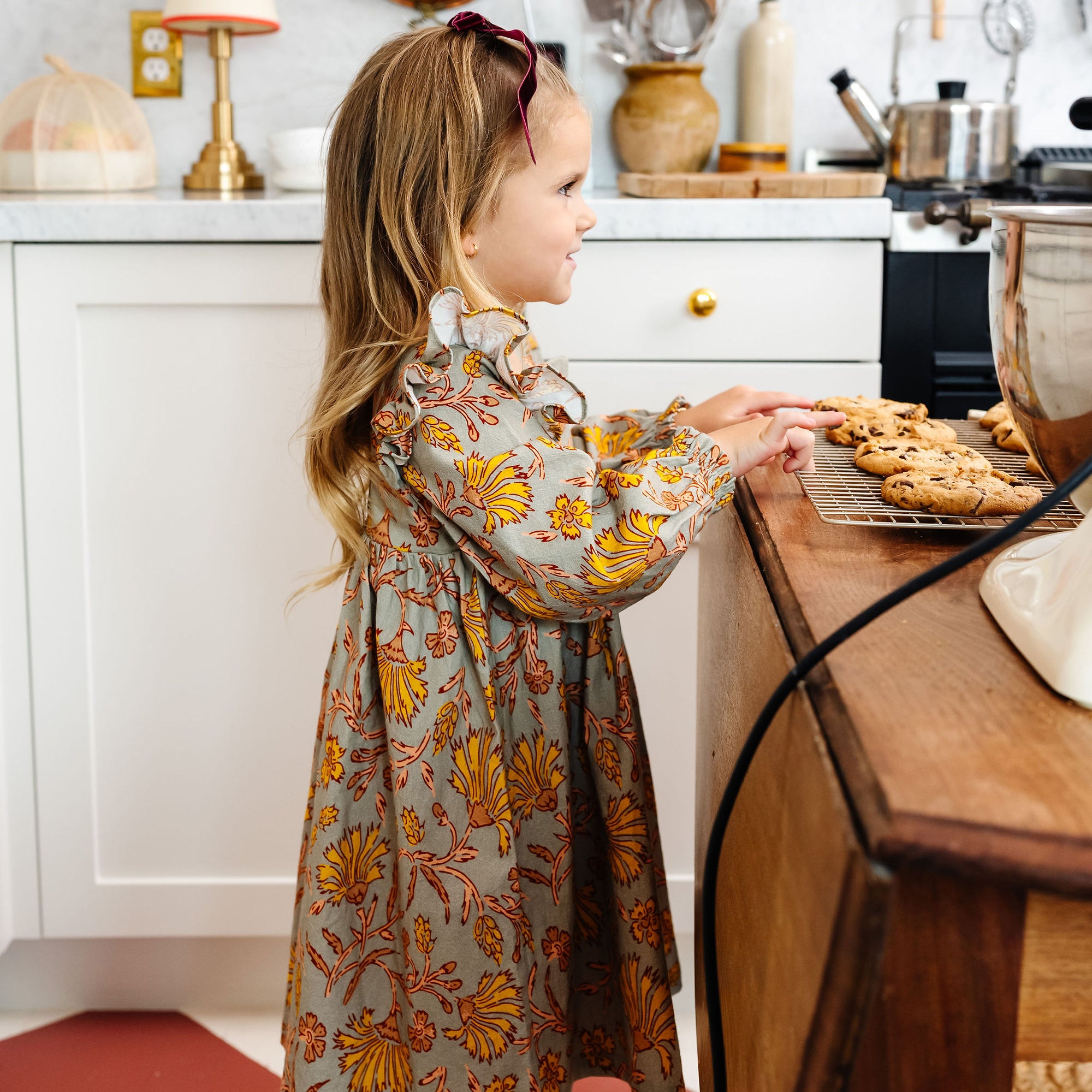 Our popular new Stella style, upgraded for Fall! You get the same sweet ruffle elements and 100% cotton comfort, plus arm coverage so she can still look cute in cooler temps.