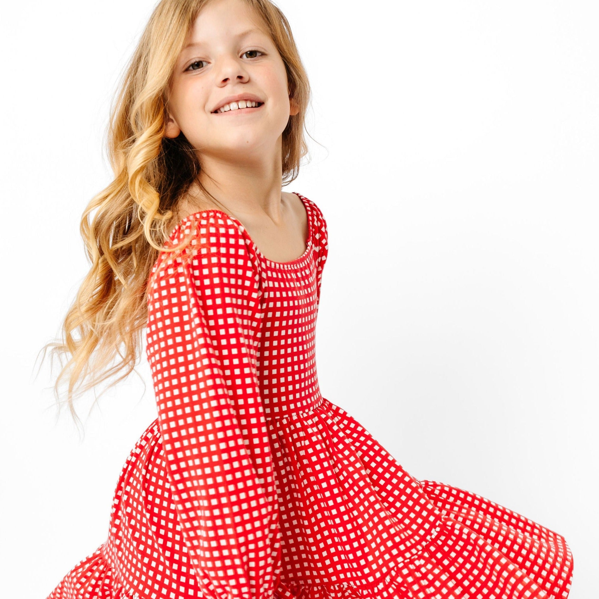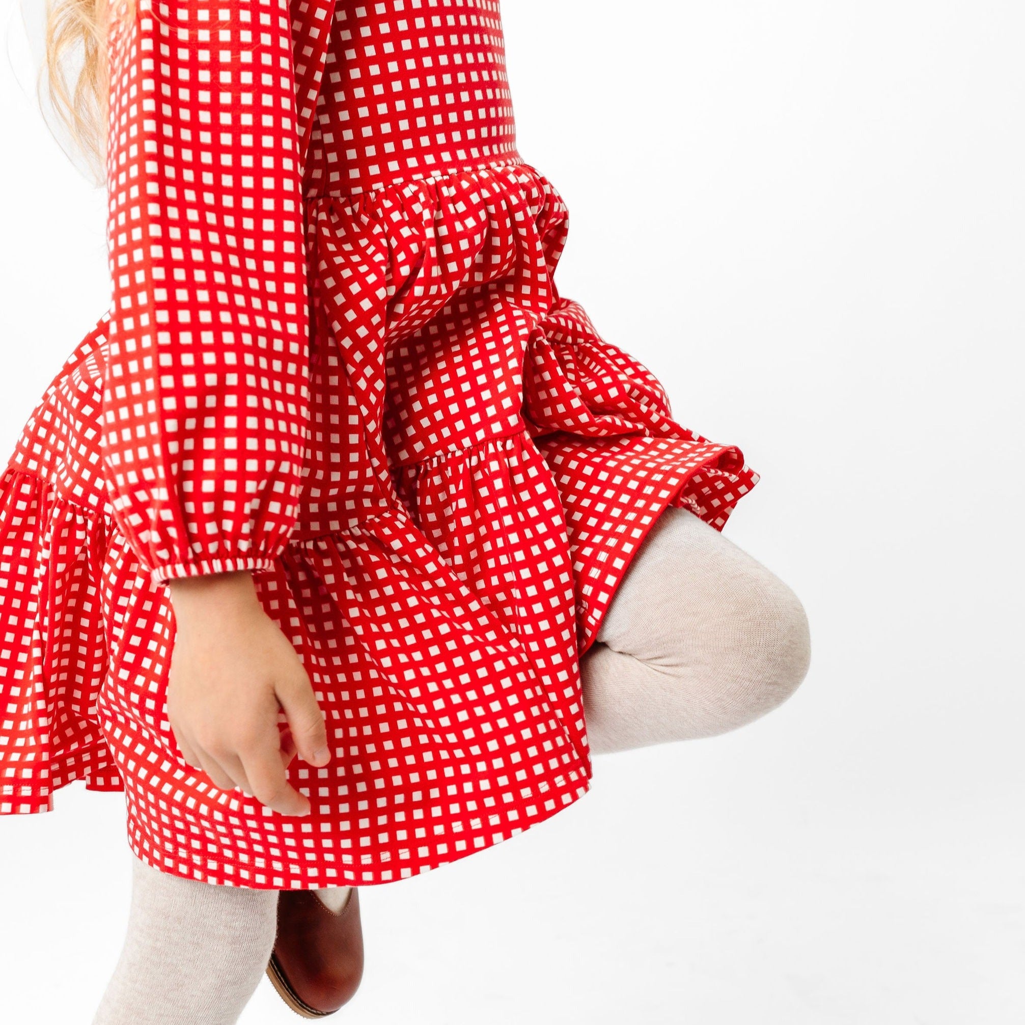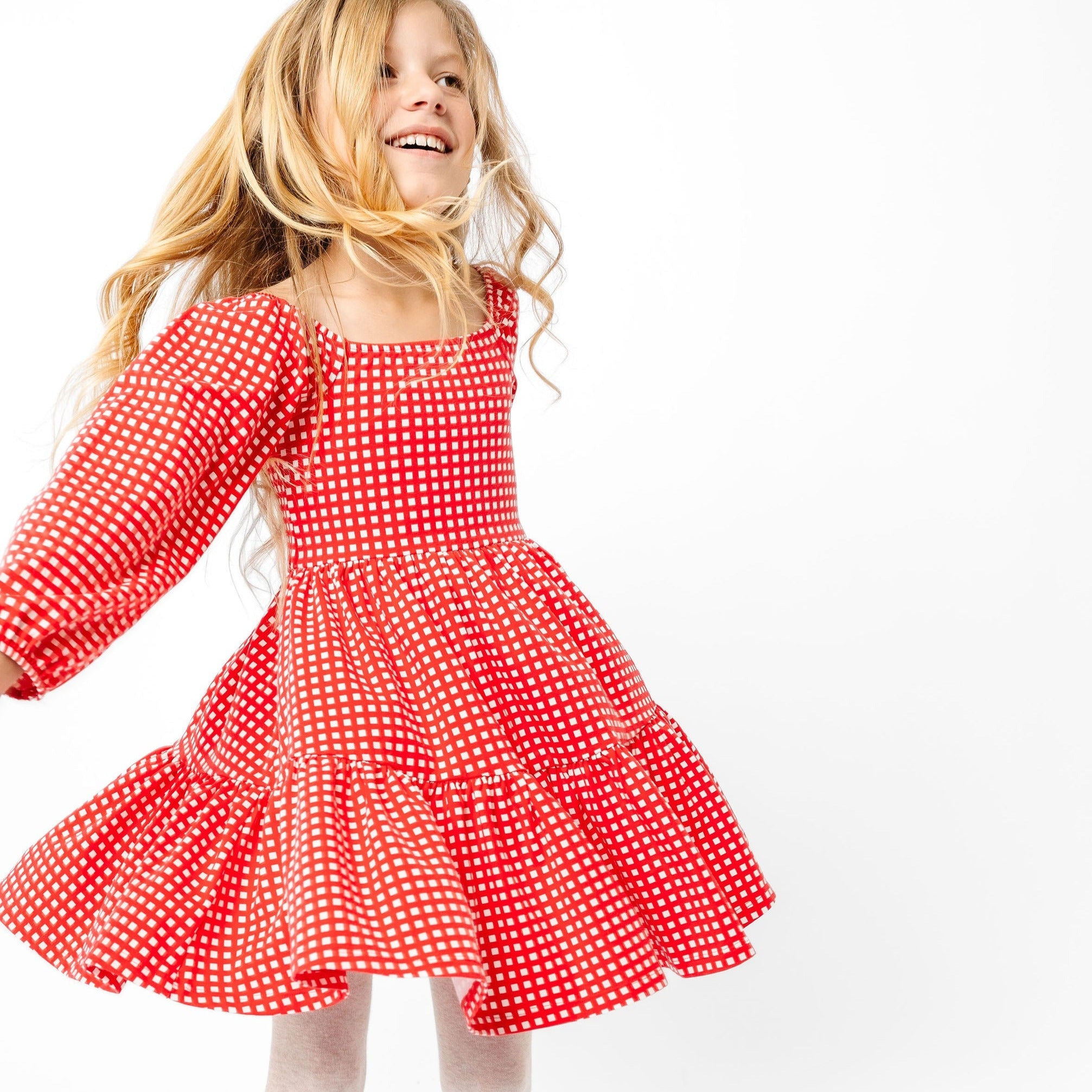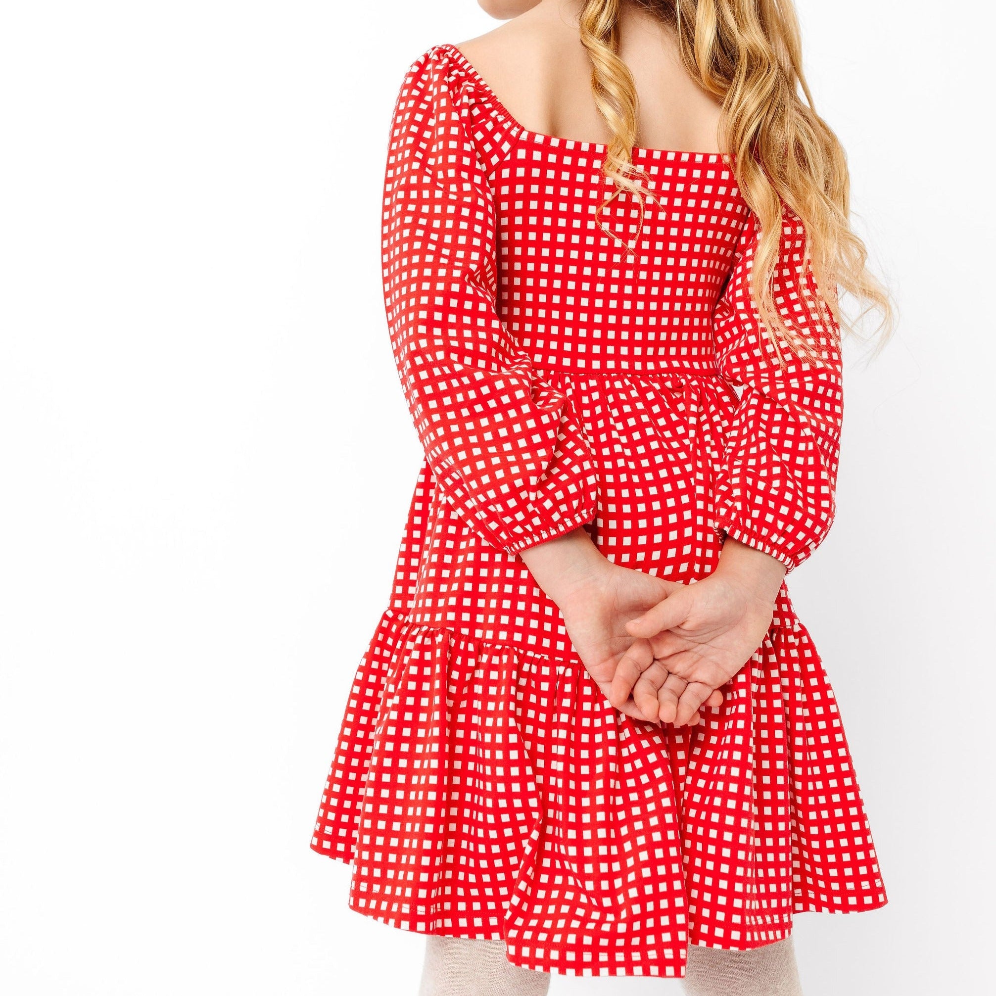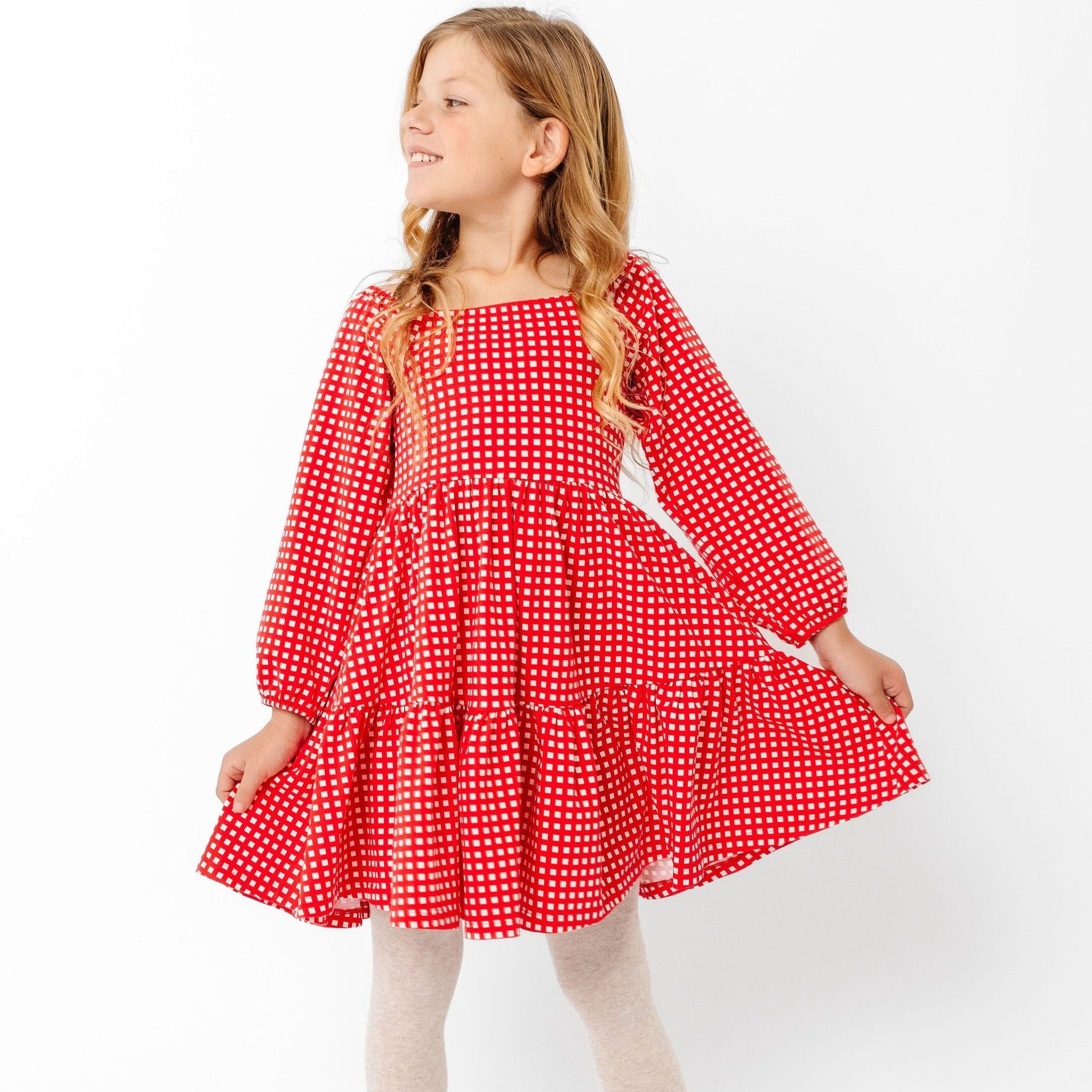 The Long Sleeve Juliet Dress in Cranberry Grid