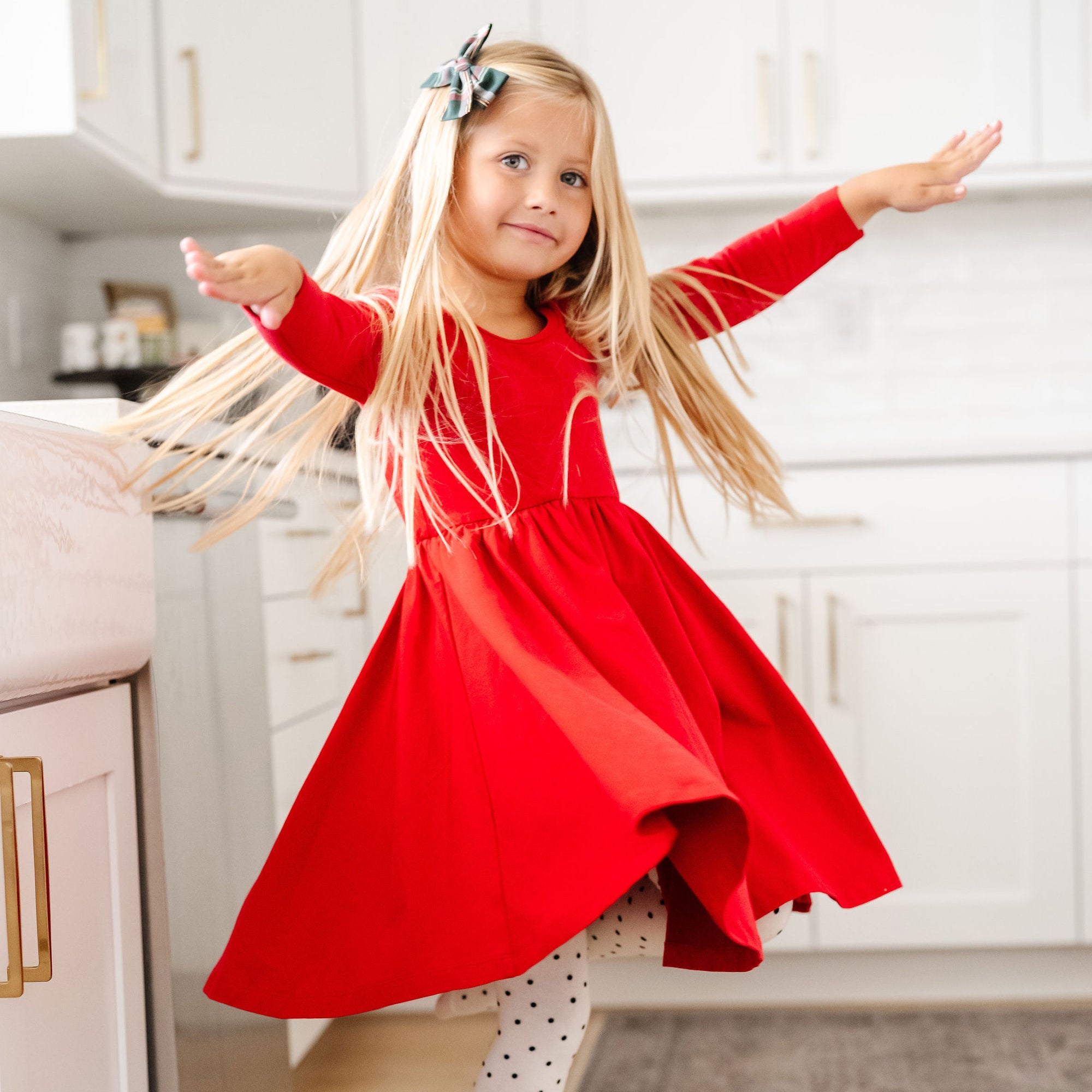 The dress that started it all. Our signature stretchy-soft fabric, circle skirt, and scooped back becomes an instant staple in her closet.Â