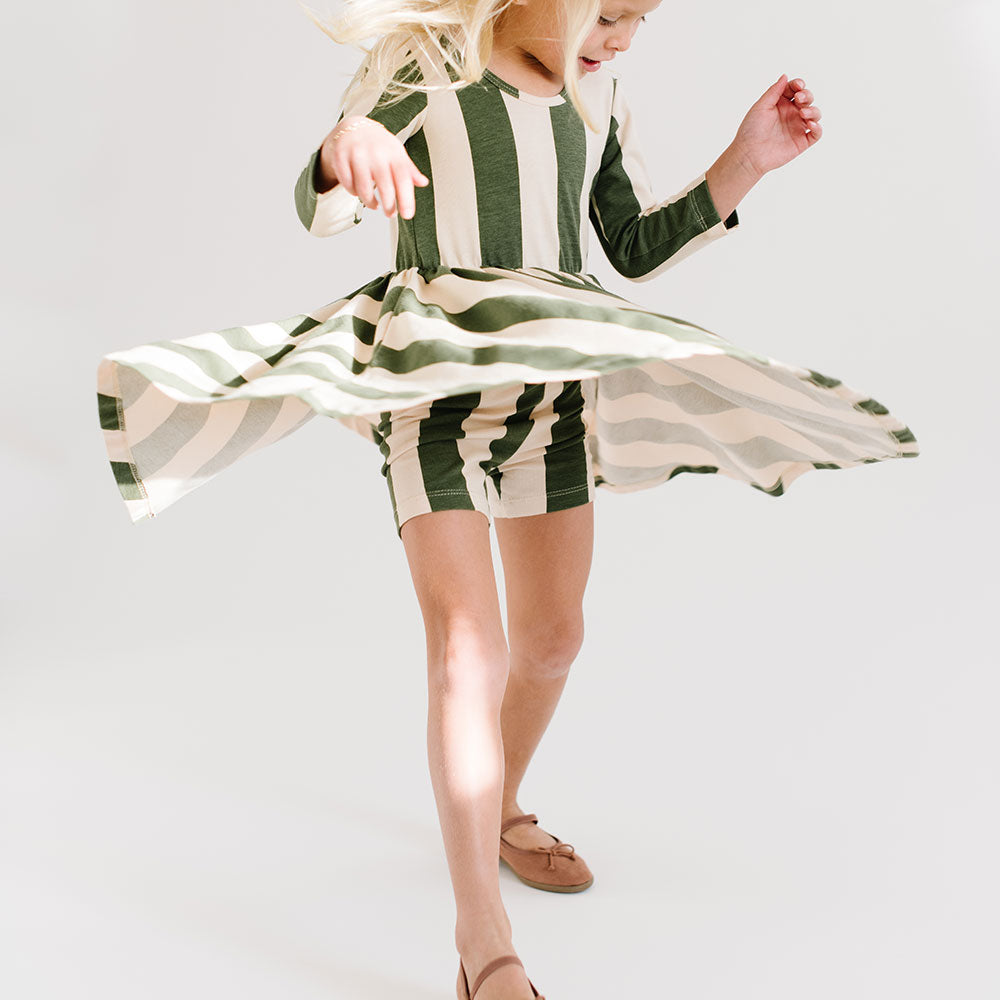 I am obsessed with this cute pattern. The pink on green is just so fun and playful. I got the tank dress at the warehouse sale without realizing it had been hemmed wonky. We were able to alter the dress into a peplum and with these matching shorts, it just makes the cutest set! Happy!