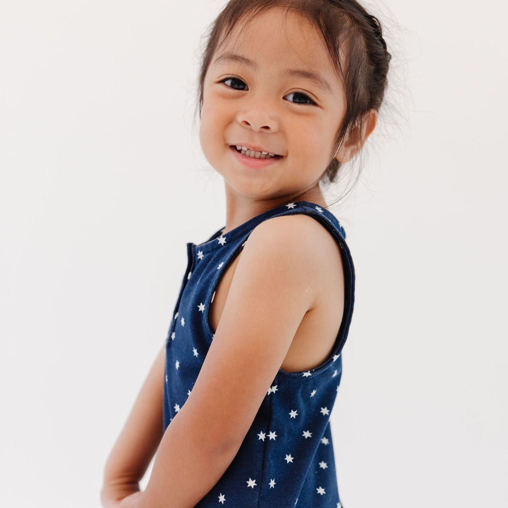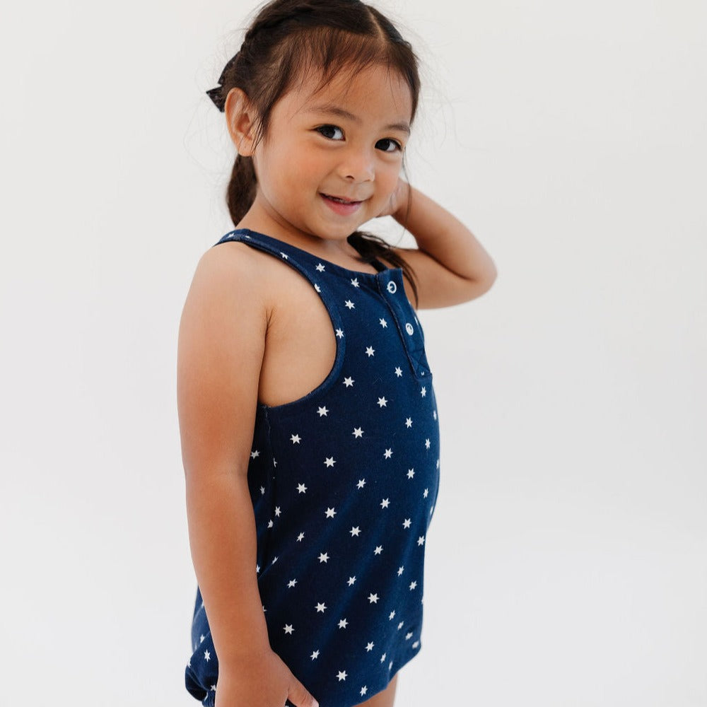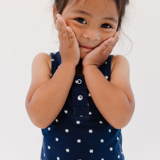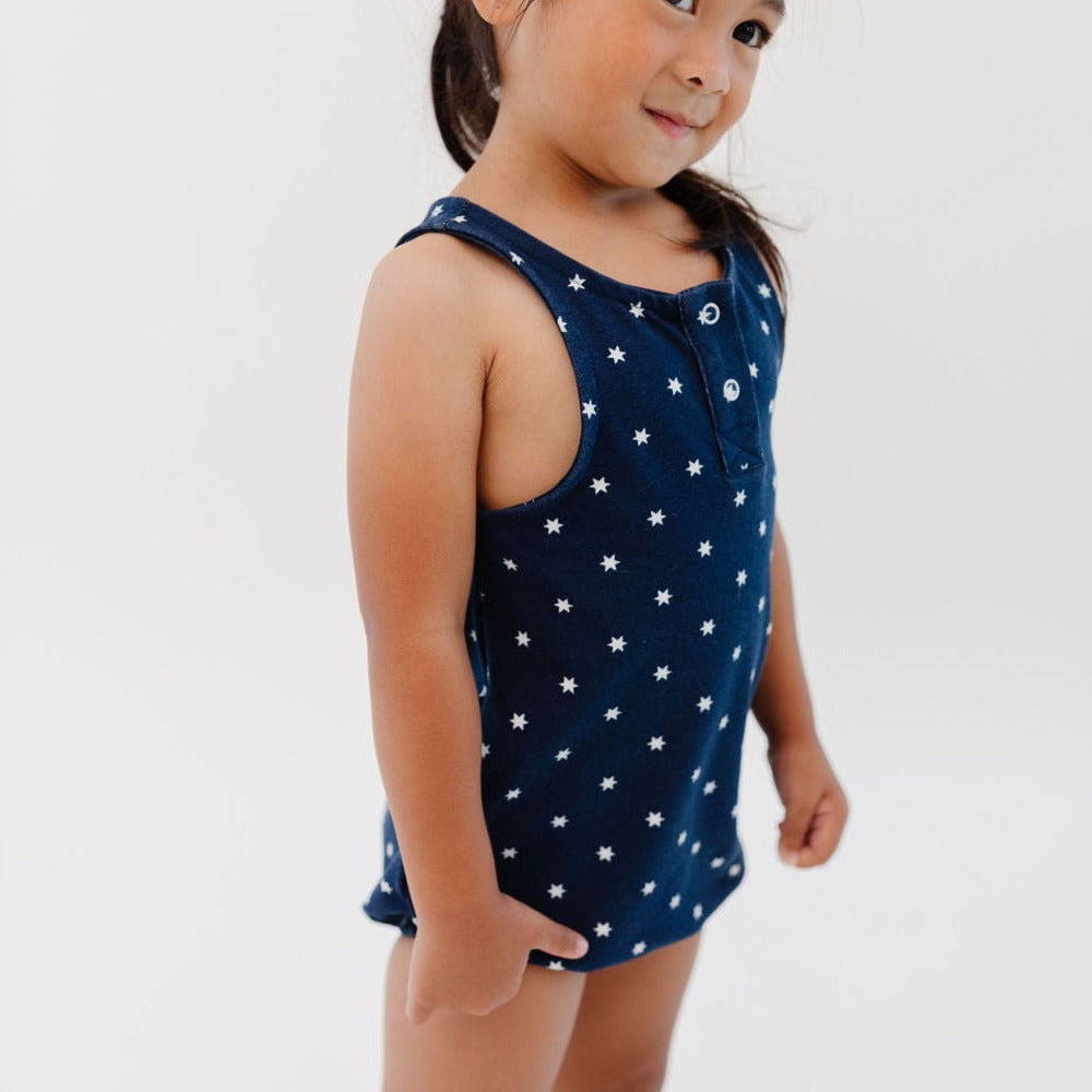 Complete with snaps, tiny tank sleeves, and bubble detailing at the legs, this Summer Bubble is perfect for little ones on warm sunny days. A gender neutral style that can be passed down to siblings for years to come!
