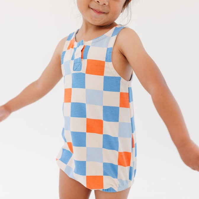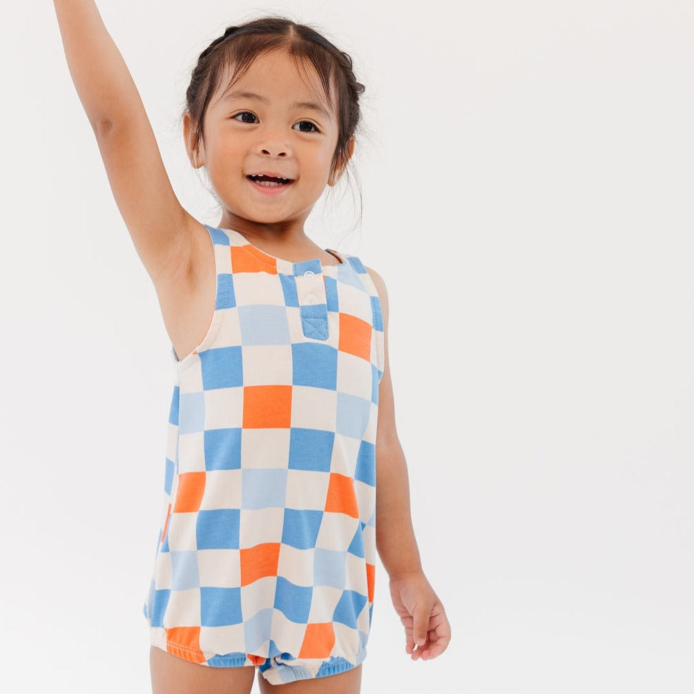 Complete with snaps, tiny tank sleeves, and bubble detailing at the legs, this Summer Bubble is perfect for little ones on warm sunny days. A gender neutral style that can be passed down to siblings for years to come!