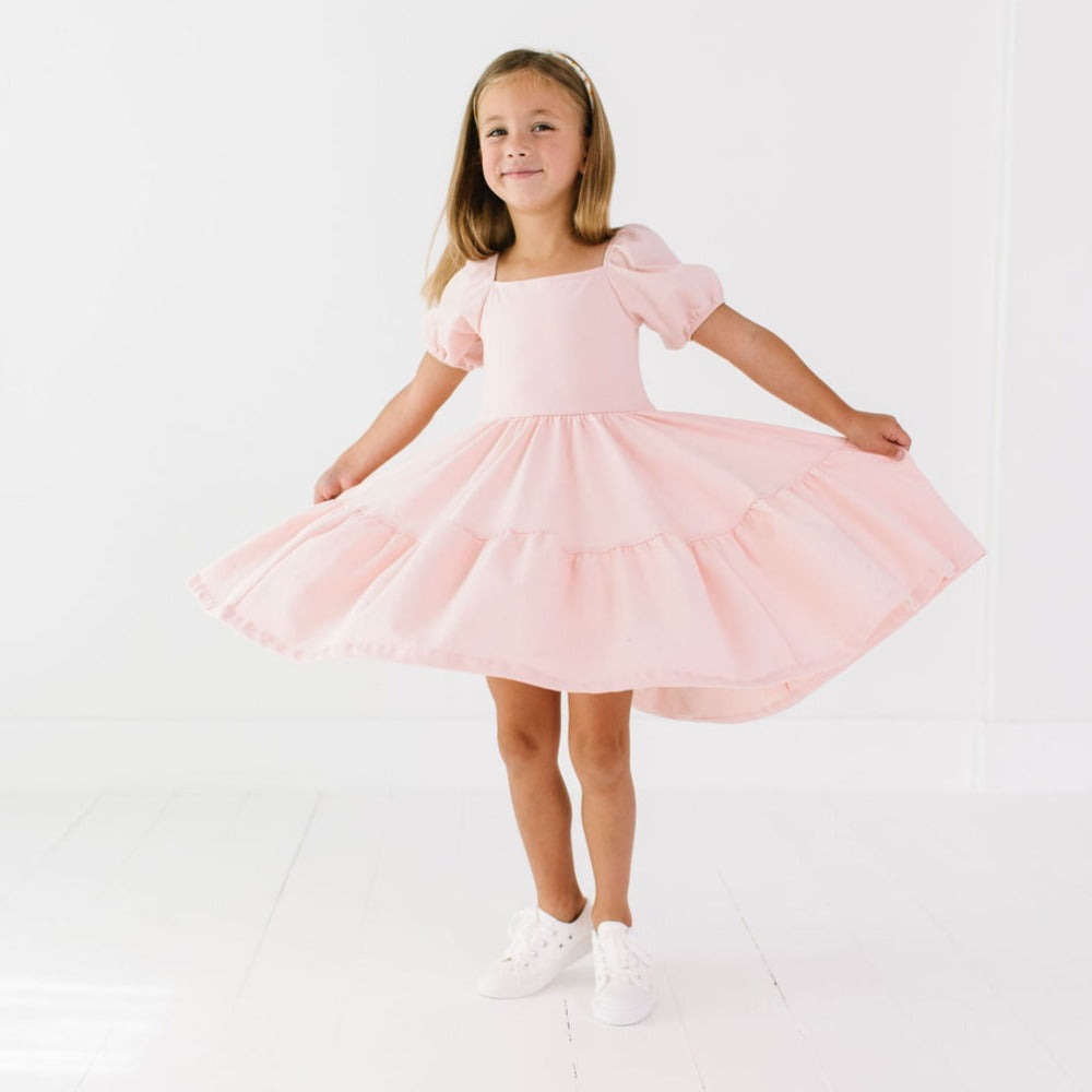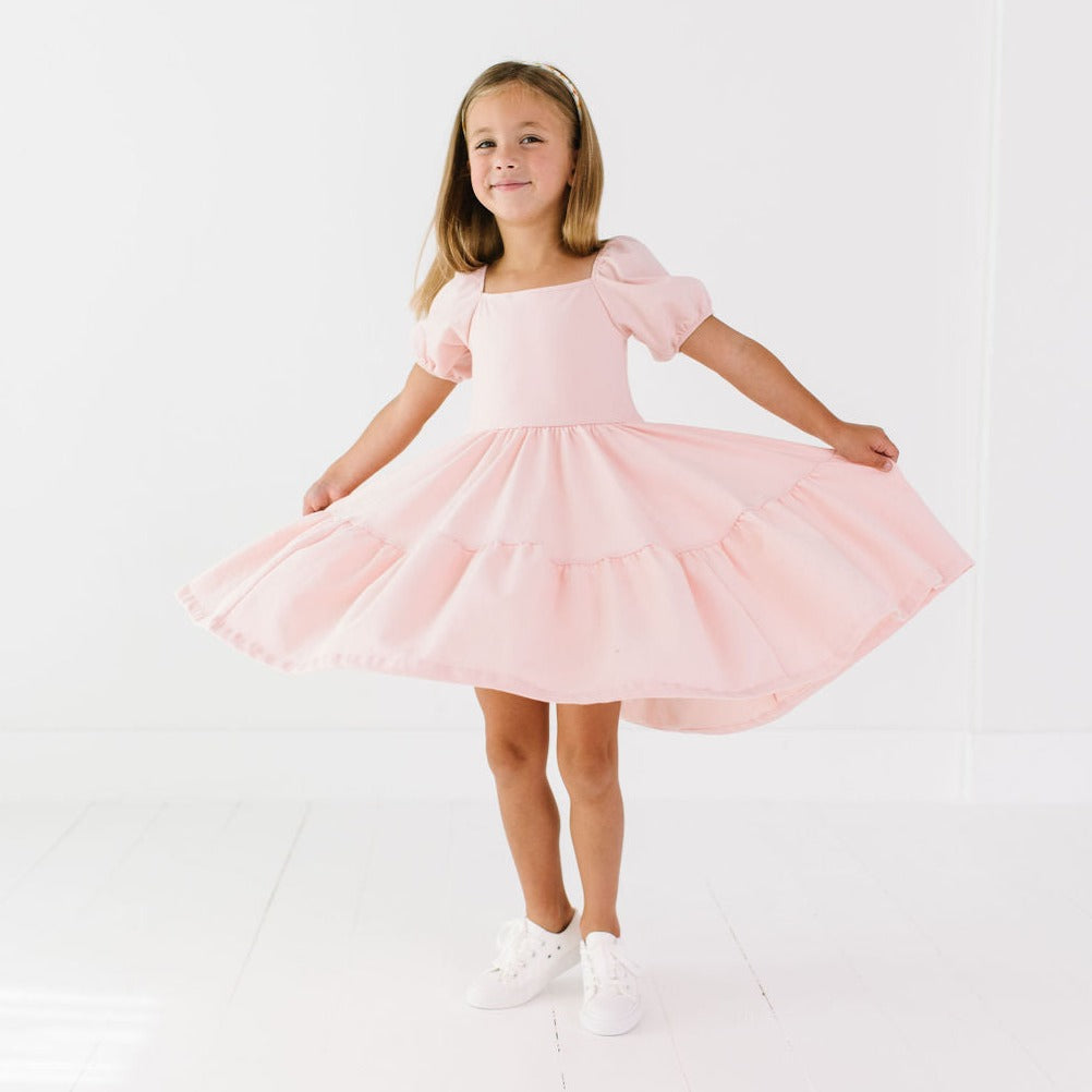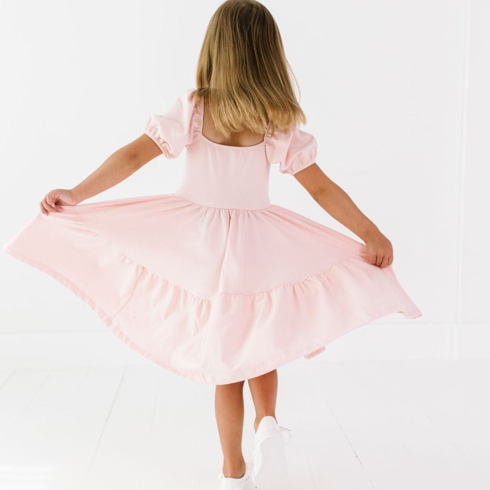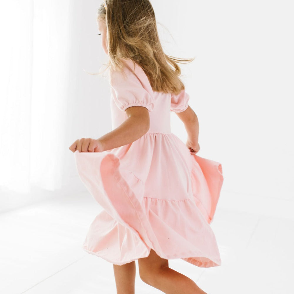 The same twirl factor as our Ballet Dress, but with a playful puff sleeve, squared neckline, and tiered skirt to make it a little more formal - perfect for any princess!