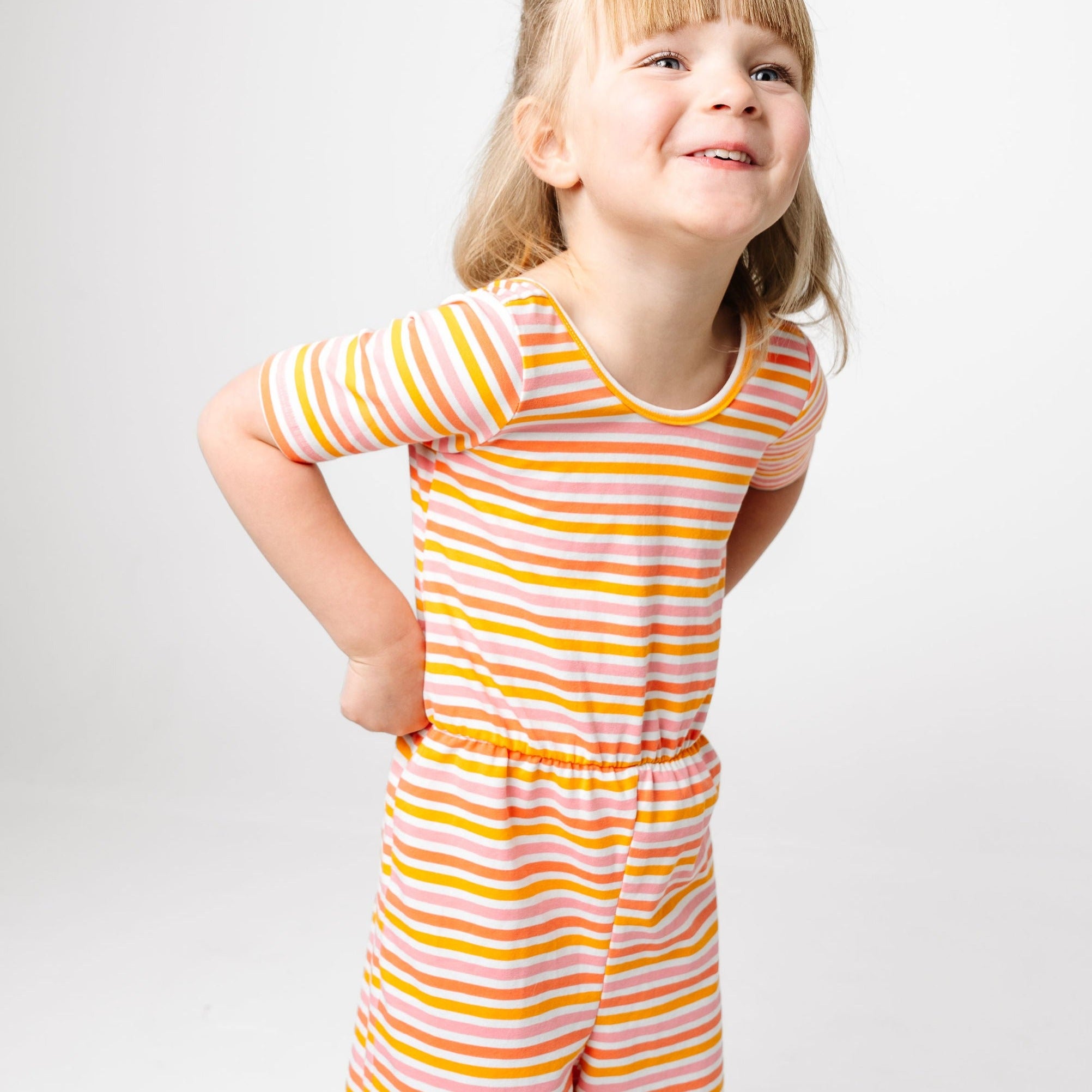 Calling all monkey bar lovers! This jumpsuit is for you. Featuring our signature low scoop back for easy slip-on, a comfy elastic waistline, and custom printed fabric using our favorite cozy cotton stretch. Pair with some classic rain boots, or pair with bare feet, there's really no wrong way to wear the jumpsuit.