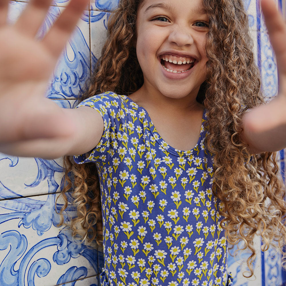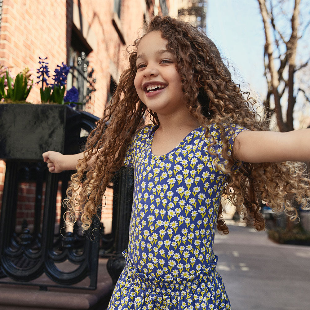 The dress that started it all because of its famous twirl - but with a shorter, flowy sleeve for summer time. Our signature stretchy-soft fabric, circle skirt, and scooped back will become an instant staple in her closet.