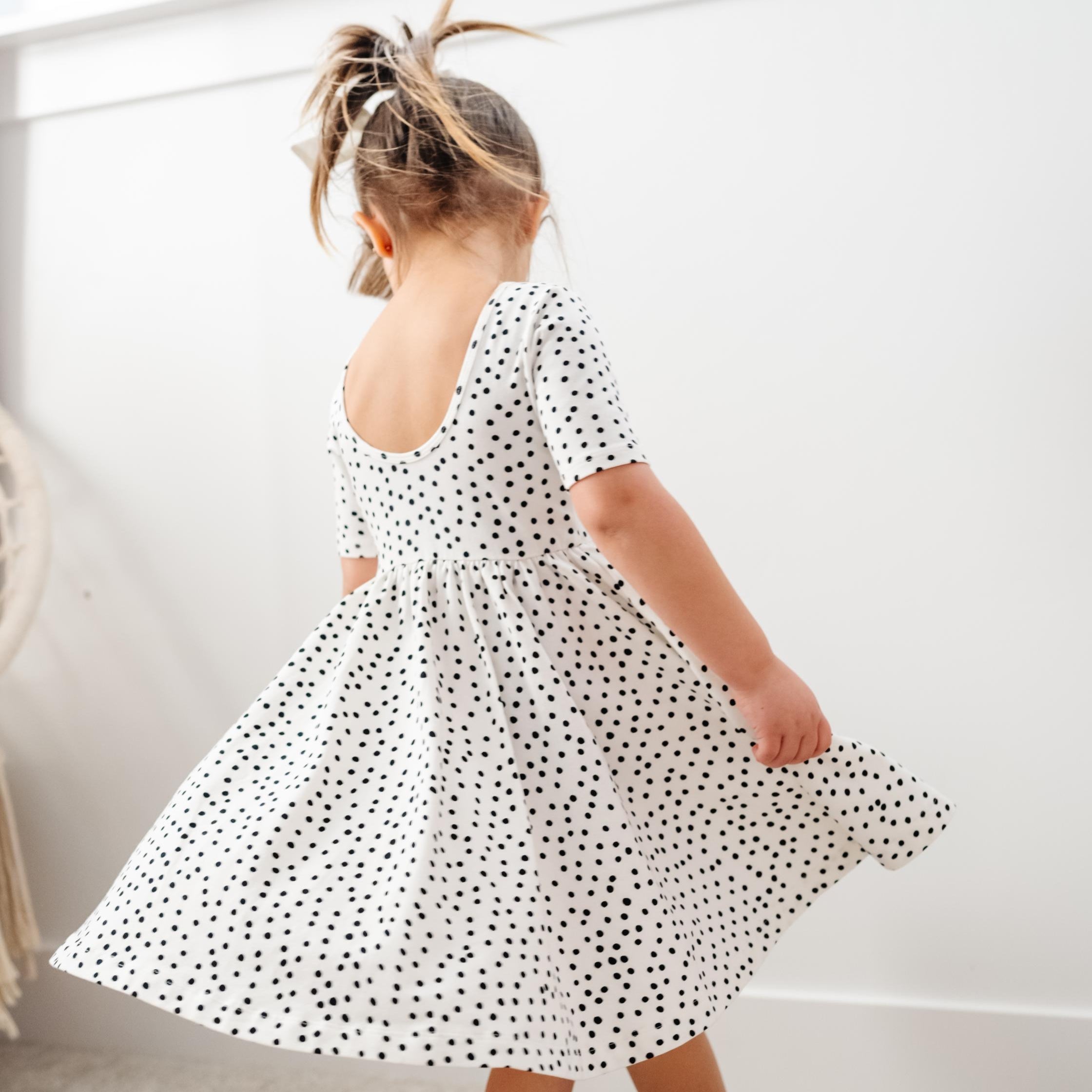 The dress that started it all because of its famous twirl. Our signature stretchy-soft fabric, circle skirt, and scooped back becomes an instant staple in her closet.