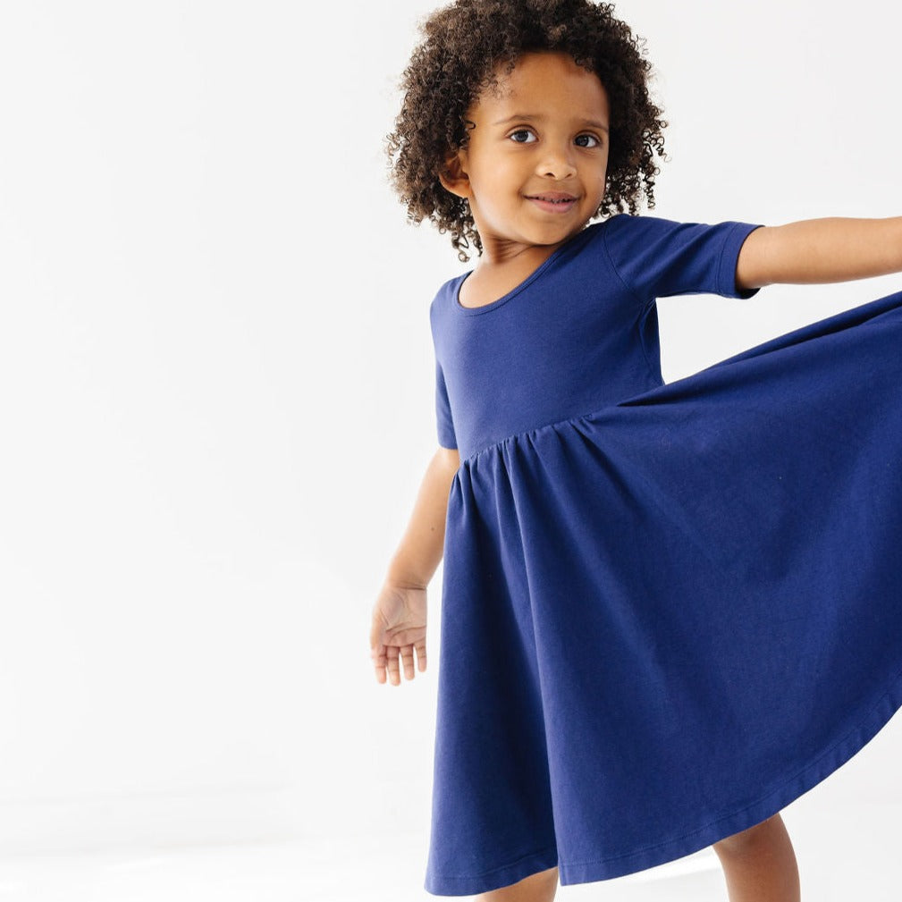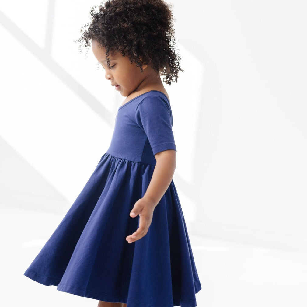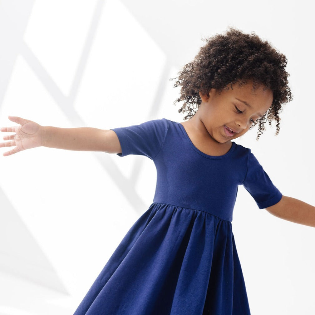 The dress that started it all because of its famous twirl. Our signature stretchy-soft fabric, circle skirt, and scooped back becomes an instant staple in her closet.