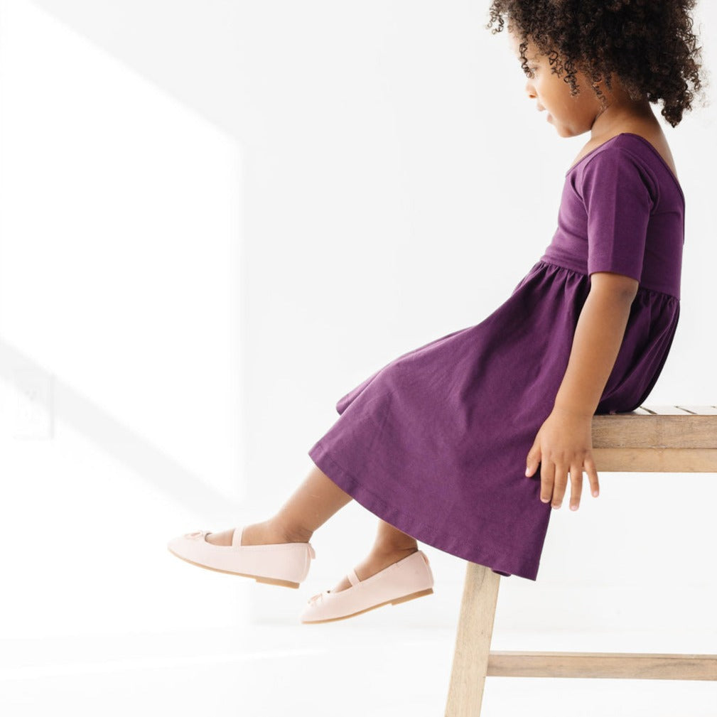 The Short Sleeve Ballet Dress in Plum