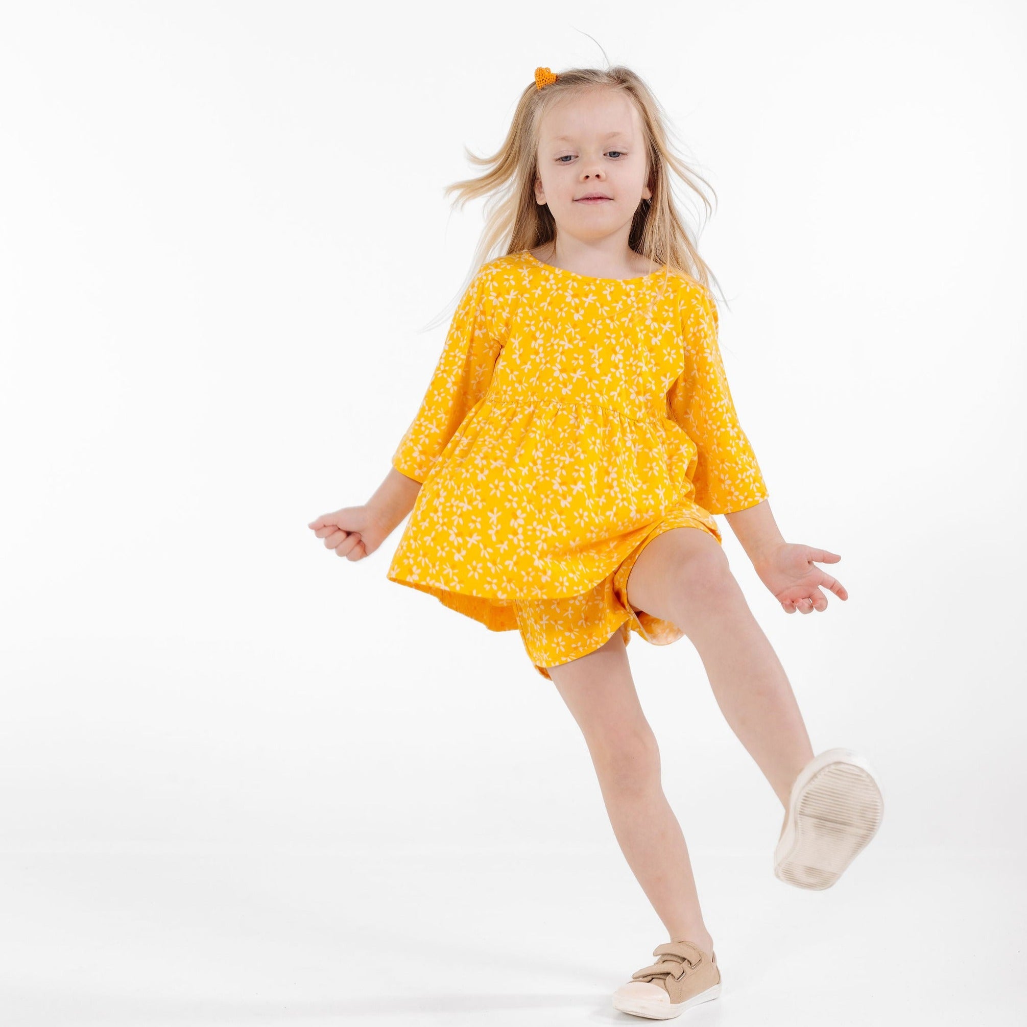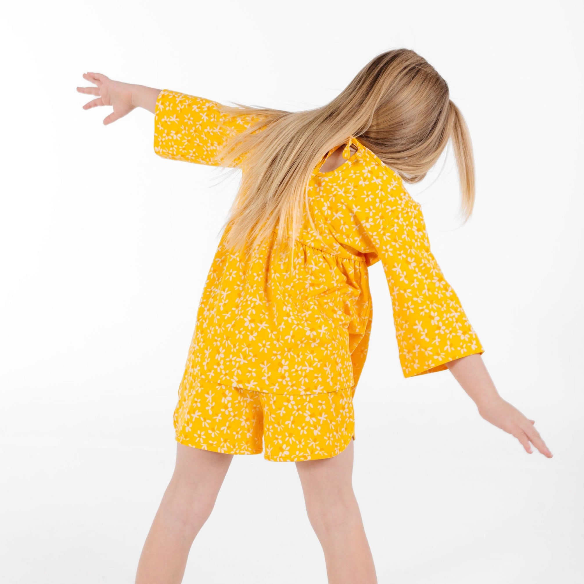 We love the carrots print! Super cute! Playsuits are comfortable and flattering. Lasts through regular washes for years (hang dry). The shorts run small/short if your kiddo is tall like mine but the top is flowy TTS.