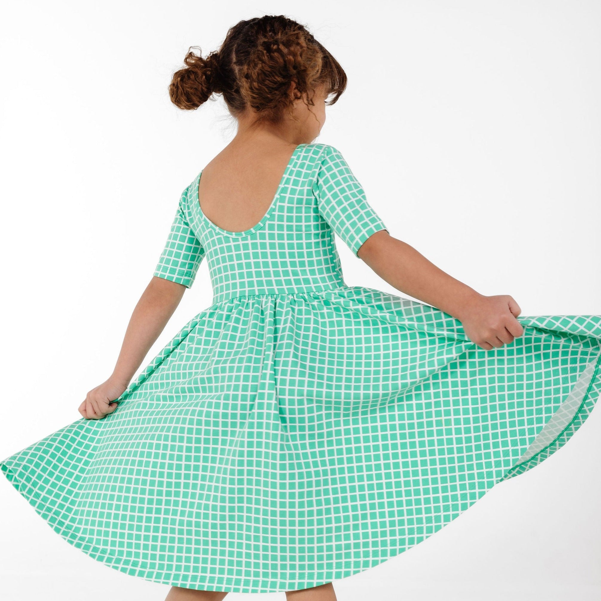 The dress that started it all because of its famous twirl. Our signature stretchy-soft fabric, circle skirt, and scooped back becomes an instant staple in her closet.