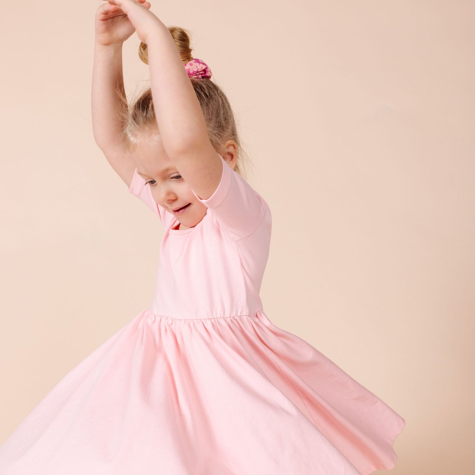 The dress that started it all because of its famous twirl. Our signature stretchy-soft fabric, circle skirt, and scooped back becomes an instant staple in her closet.