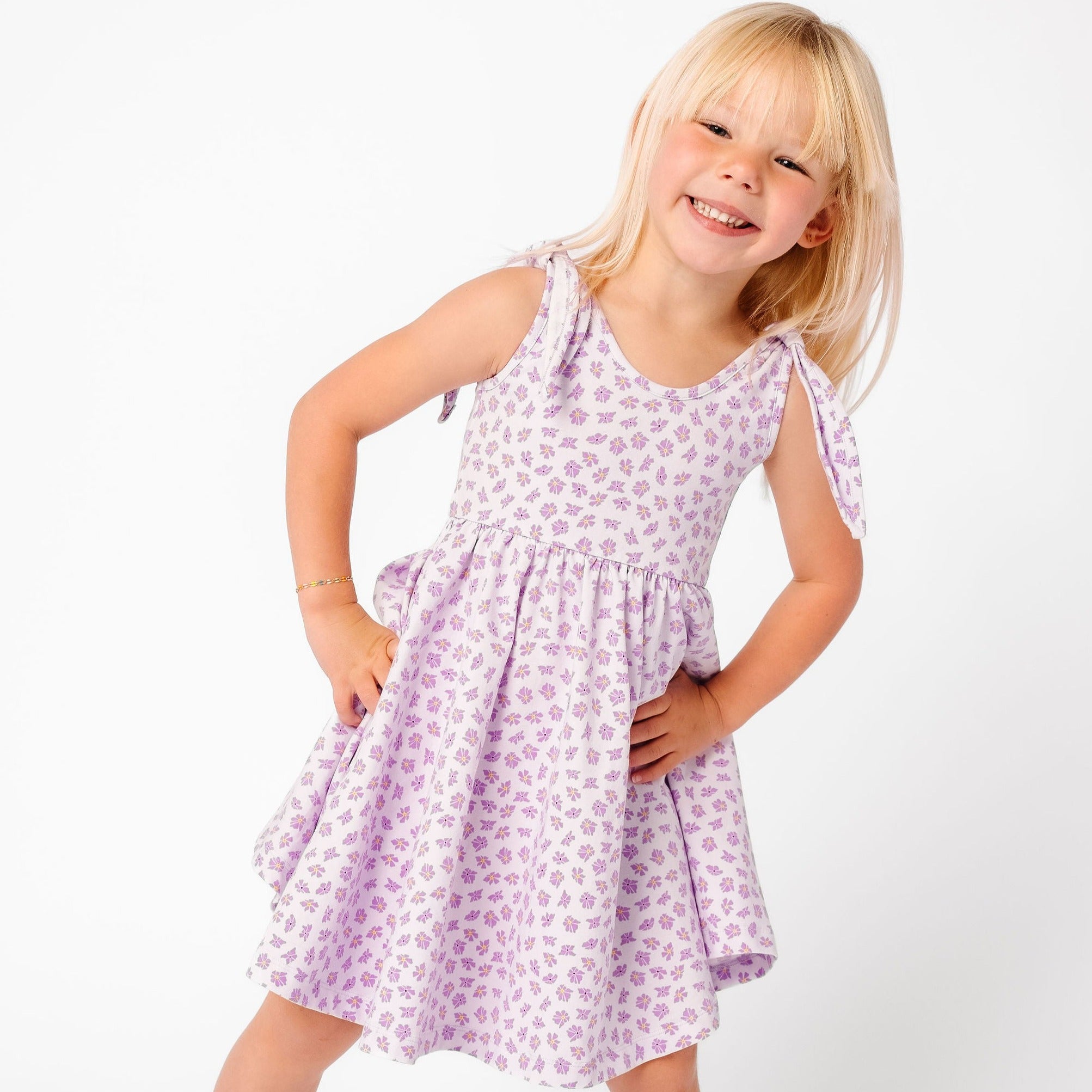 Complete with faux shoulder ties and our classic twirly skirt, the Bow Tank Ballet Dress is designed to add a touch of grace and playfulness to your little one's wardrobe. She'll love the way this dress combines style, comfort, and versatility.