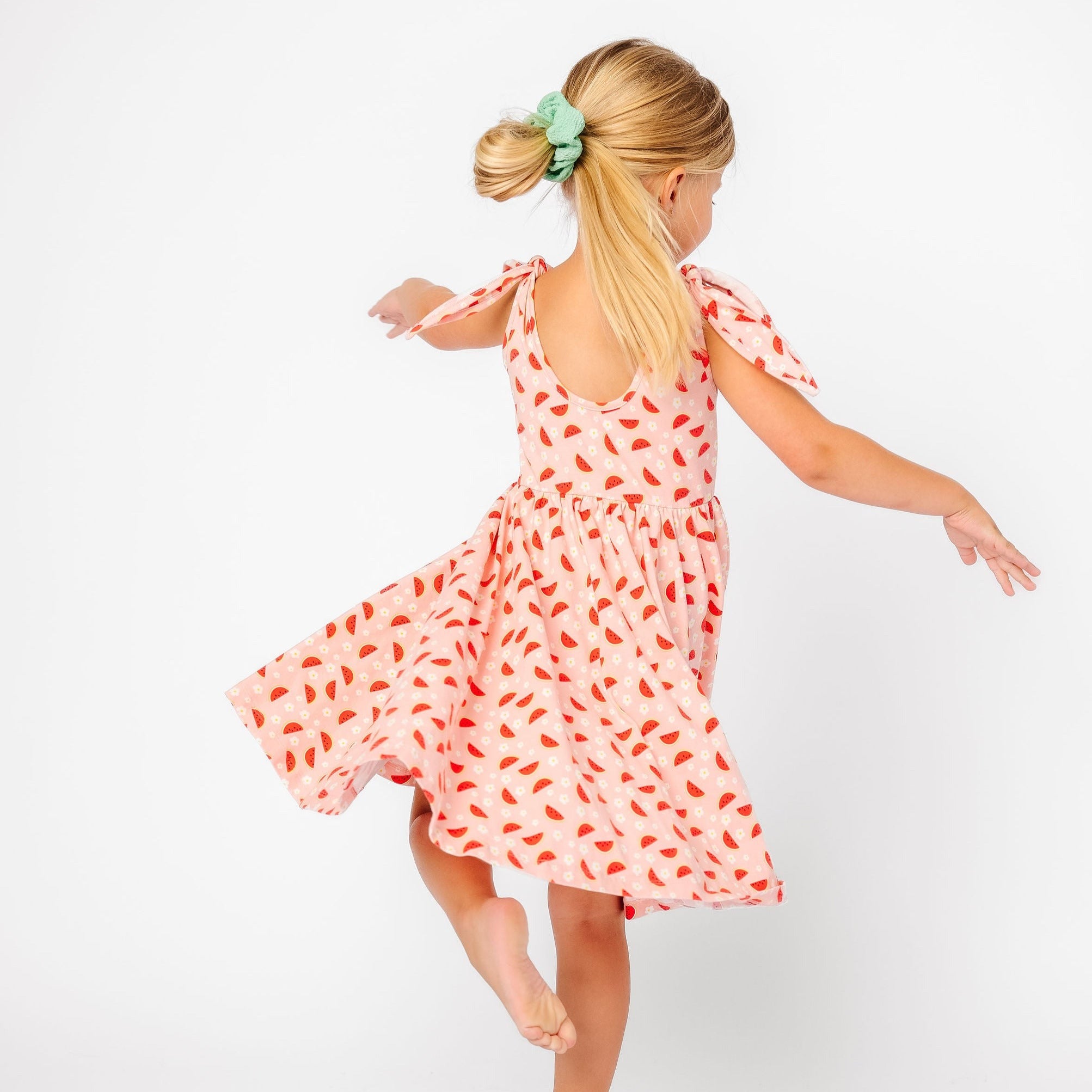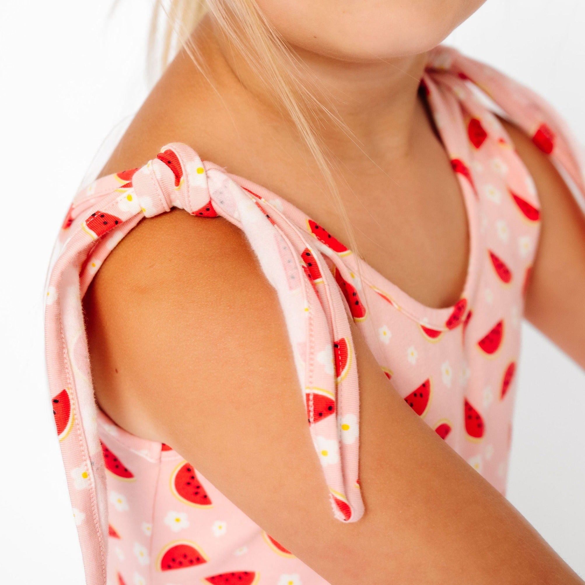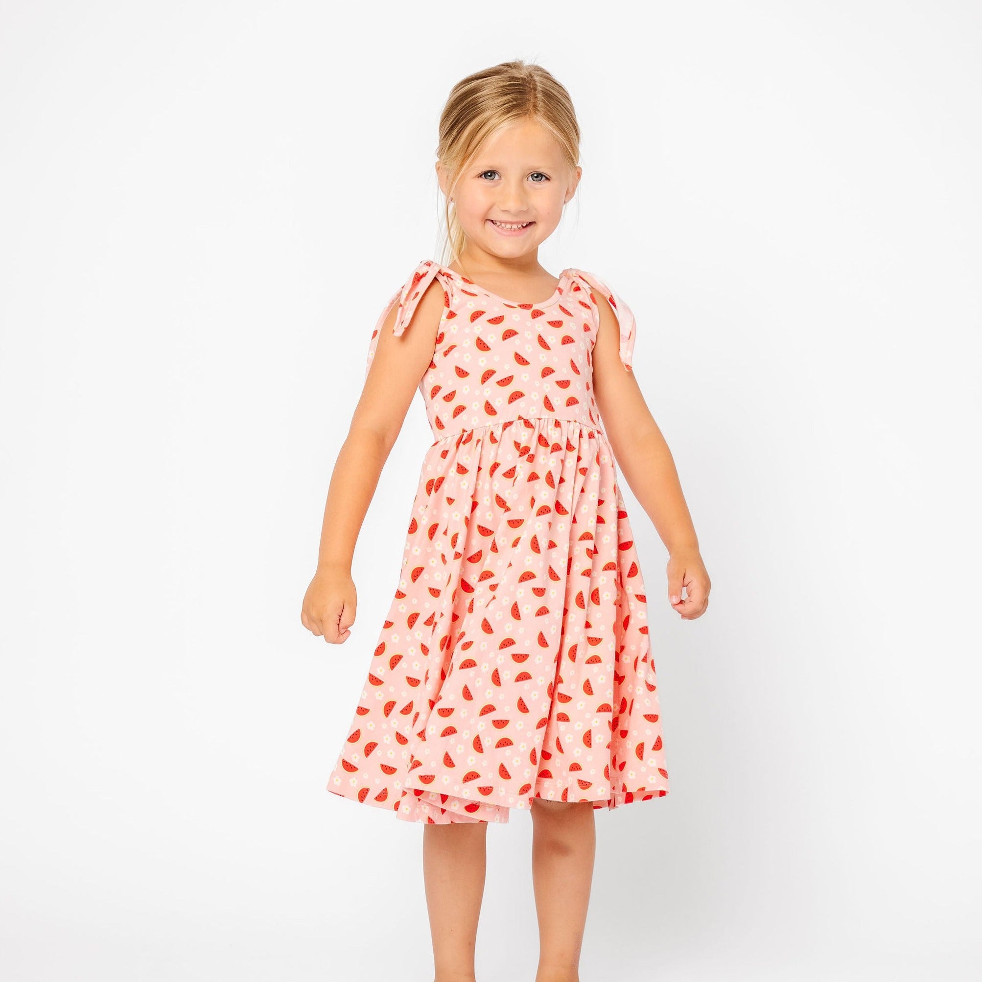 Complete with faux shoulder ties and our classic twirly skirt, the Bow Tank Ballet Dress is designed to add a touch of grace and playfulness to your little one's wardrobe. She'll love the way this dress combines style, comfort, and versatility.