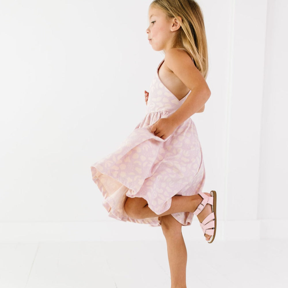 Say hello to an A+A classic, the pinafore. Featuring our signature stretchy-soft fabric, a full circle skirt, and pinafore style straps. This sweet style is as classic as it is comfy.