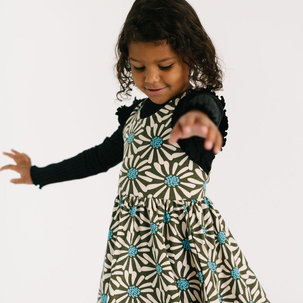 Say hello to an A+A classic, the pinafore. Featuring our signature stretchy-soft fabric, a full circle skirt, and pinafore style straps. This sweet style is as classic as it is comfy.