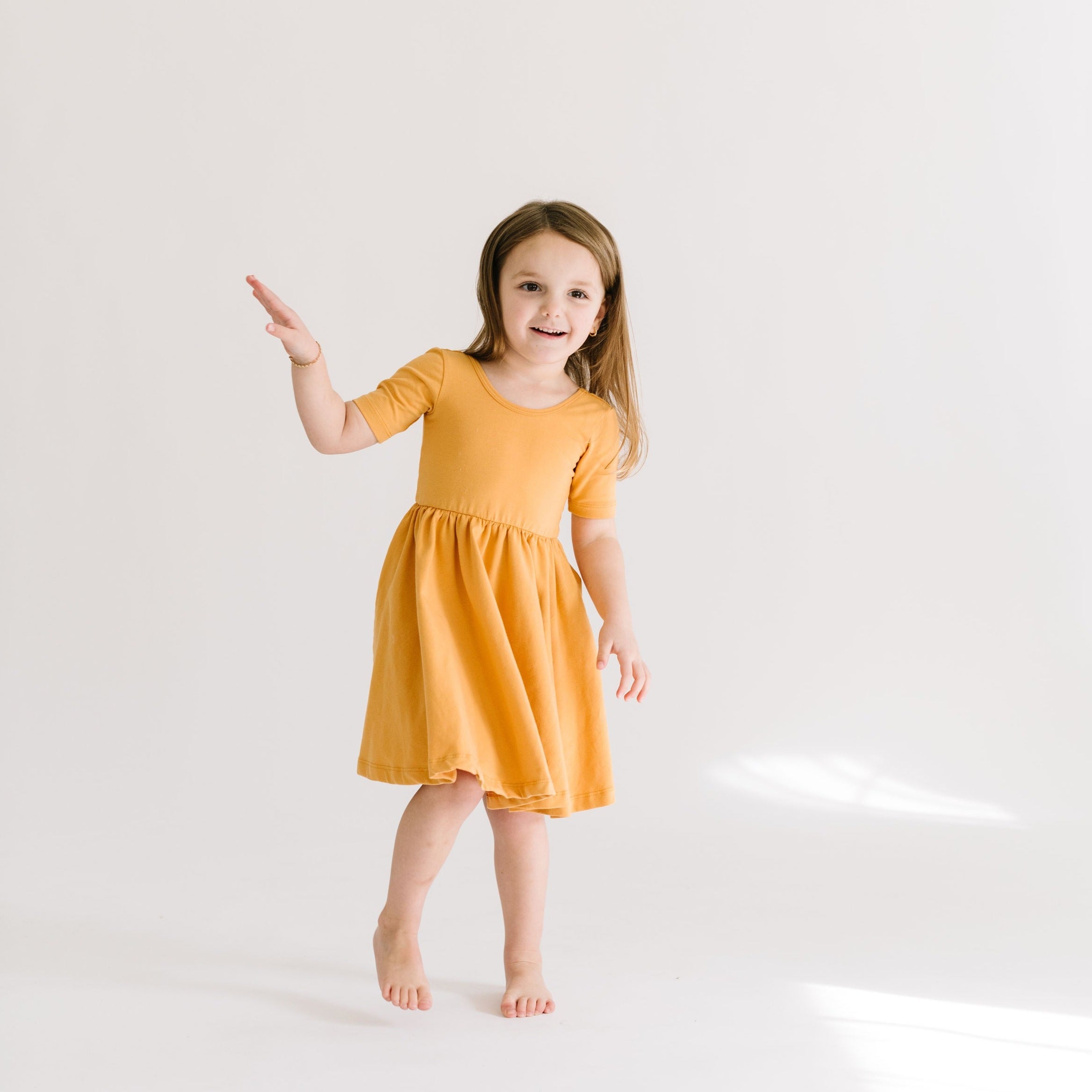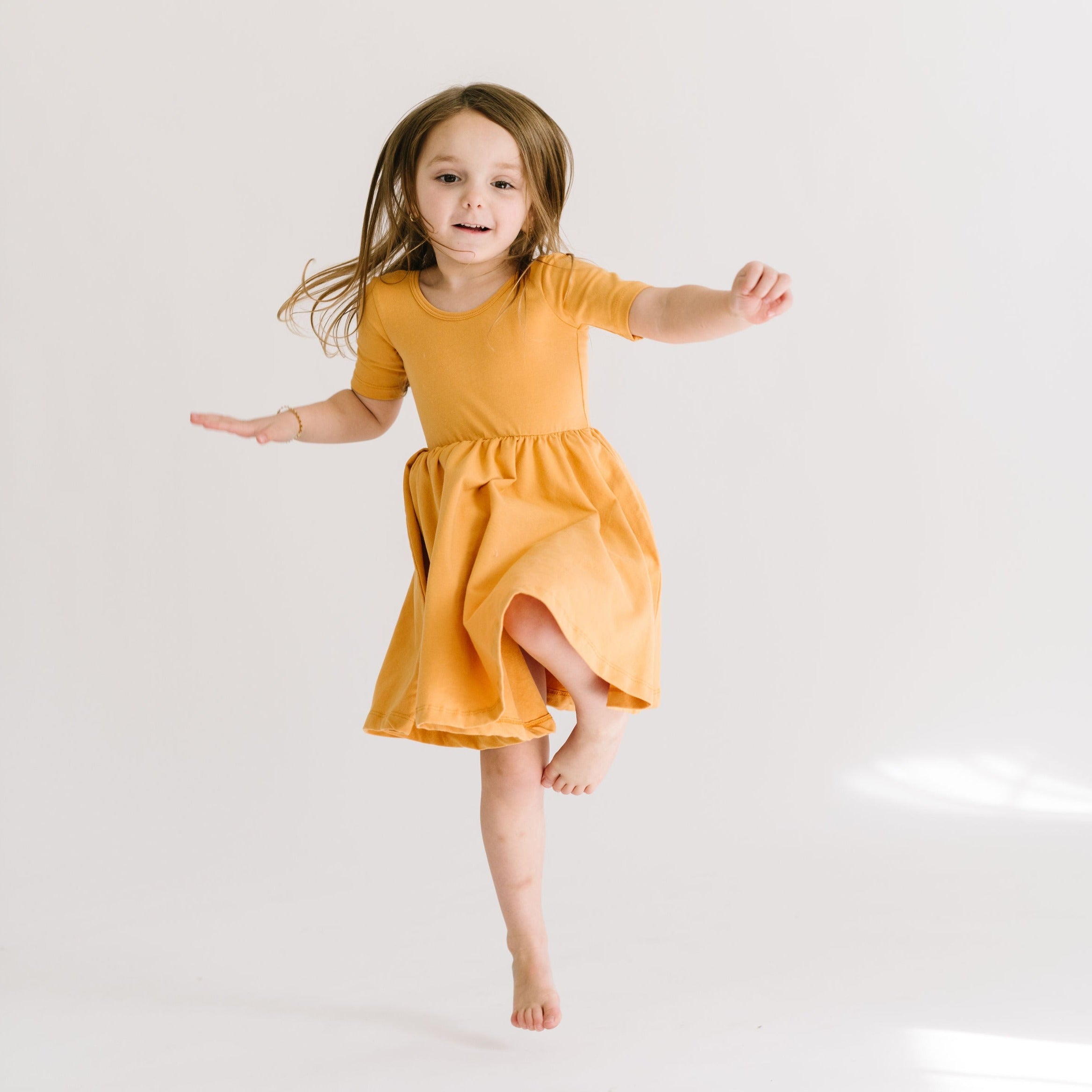 The dress that started it all because of its famous twirl. Our signature stretchy-soft fabric, circle skirt, and scooped back becomes an instant staple in her closet.
