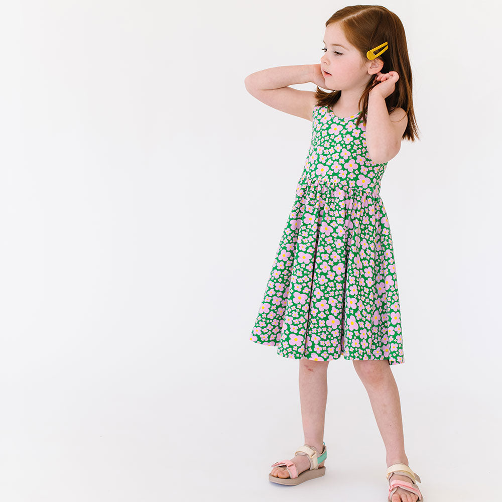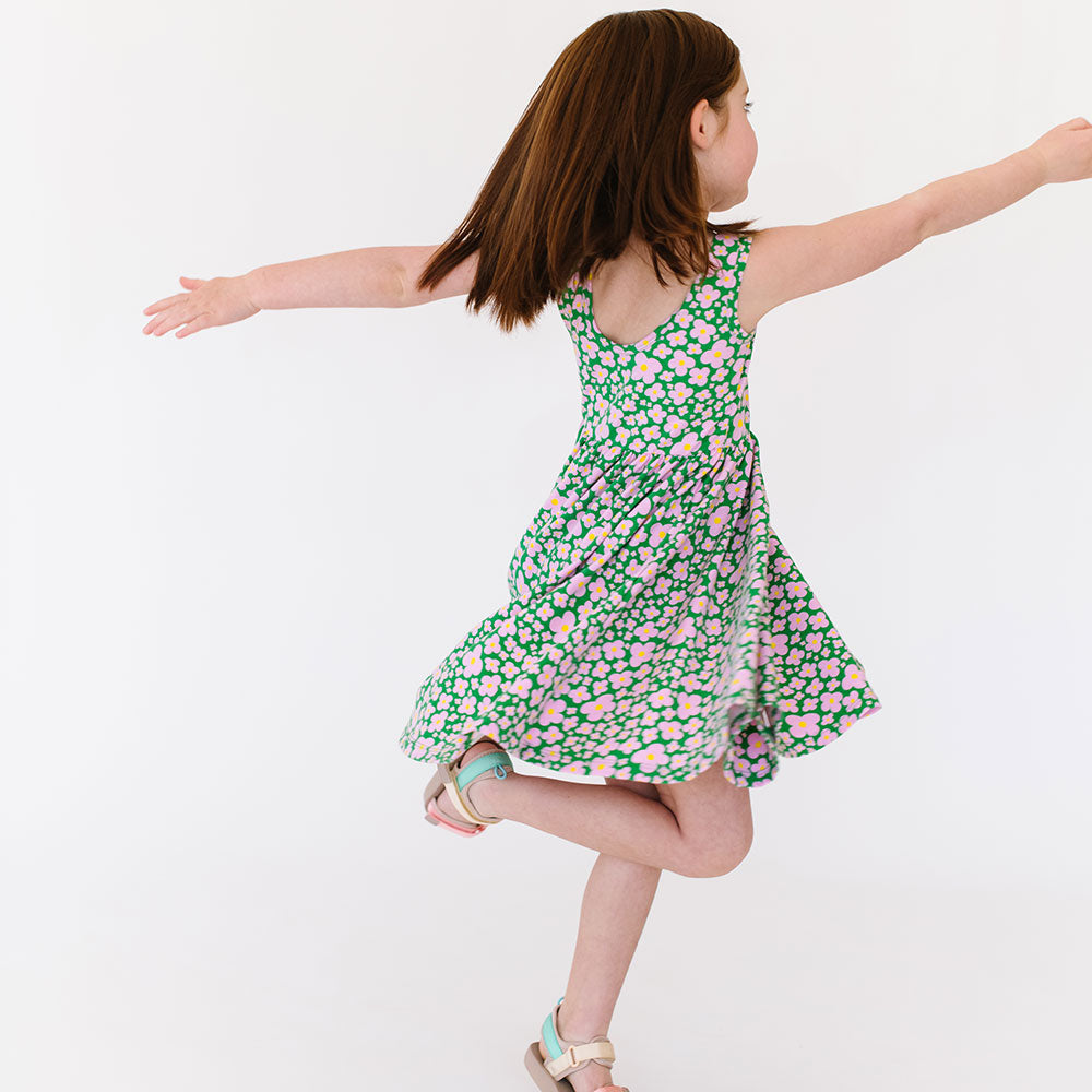 The dress that started it all because of its famous twirl. Our signature stretchy-soft fabric, circle skirt, and scooped back becomes an instant staple in her closet.