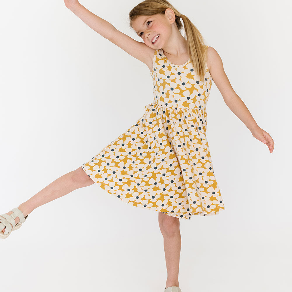 The dress that started it all because of its famous twirl. Our signature stretchy-soft fabric, circle skirt, and scooped back becomes an instant staple in her closet.