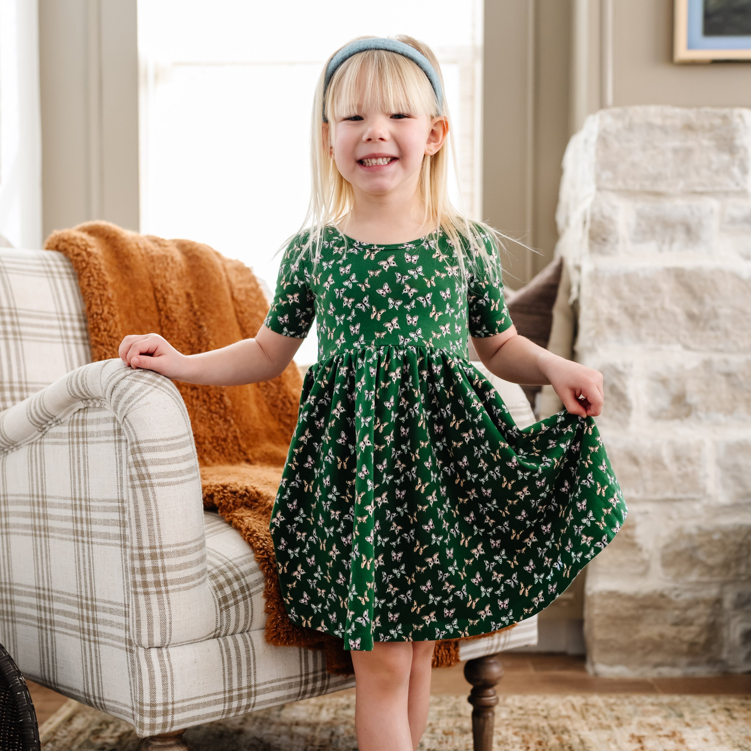 The dress that started it all because of its famous twirl. Our signature stretchy-soft fabric, circle skirt, and scooped back becomes an instant staple in her closet.