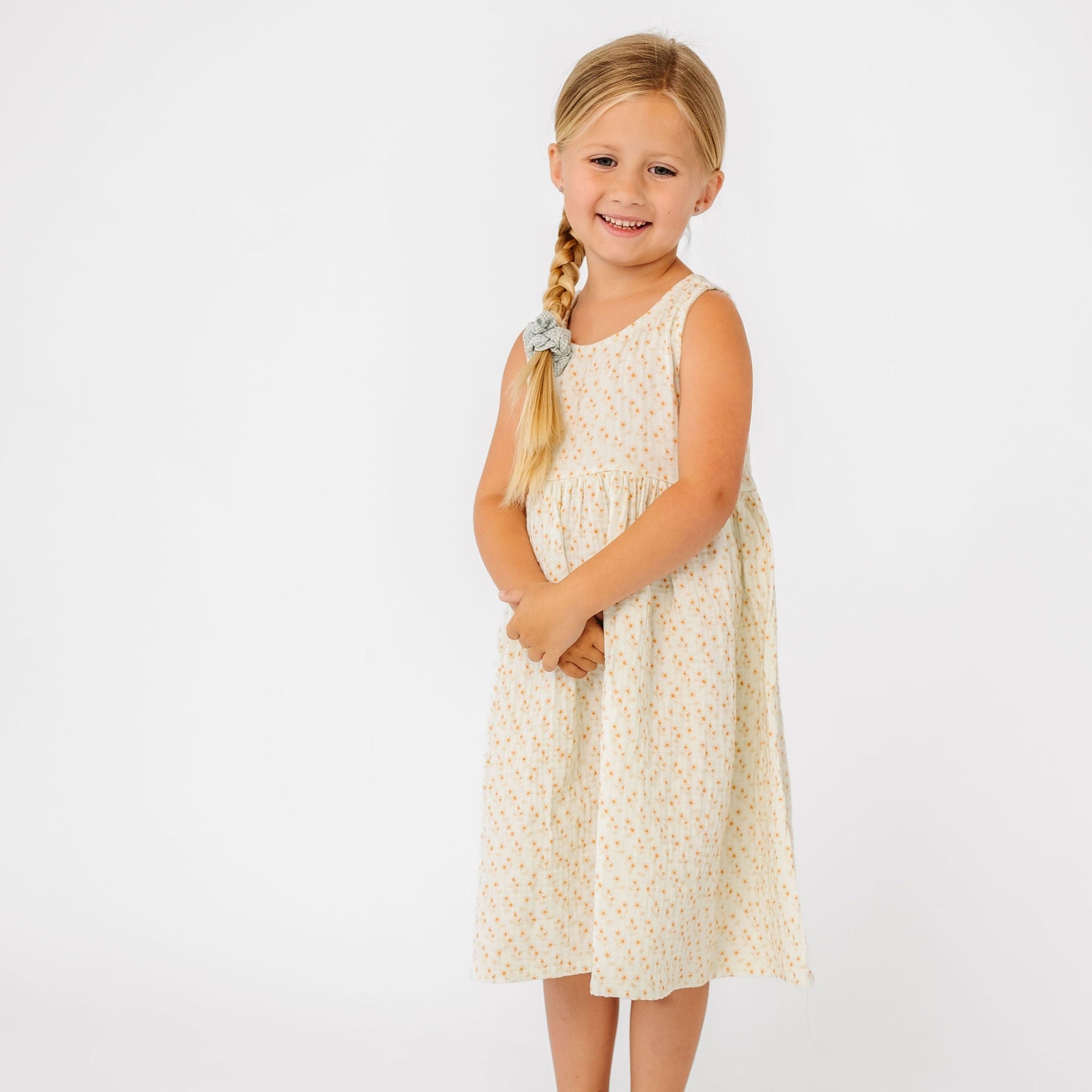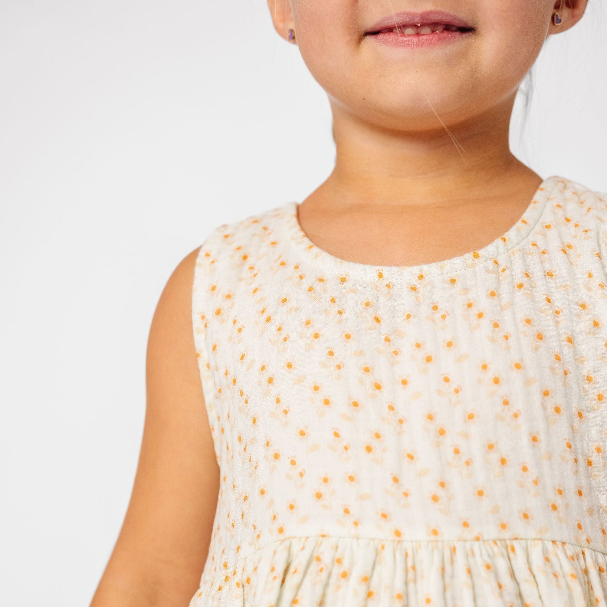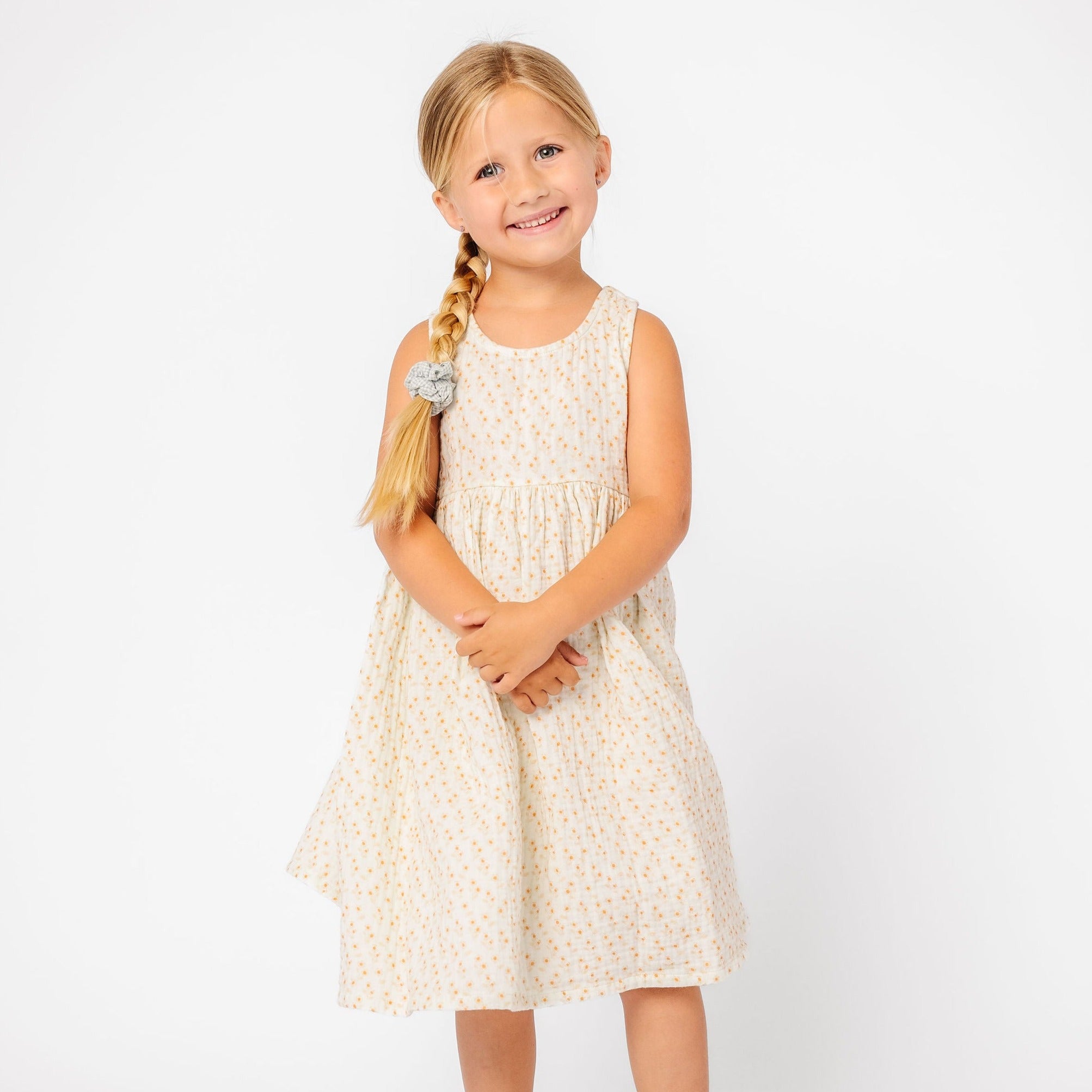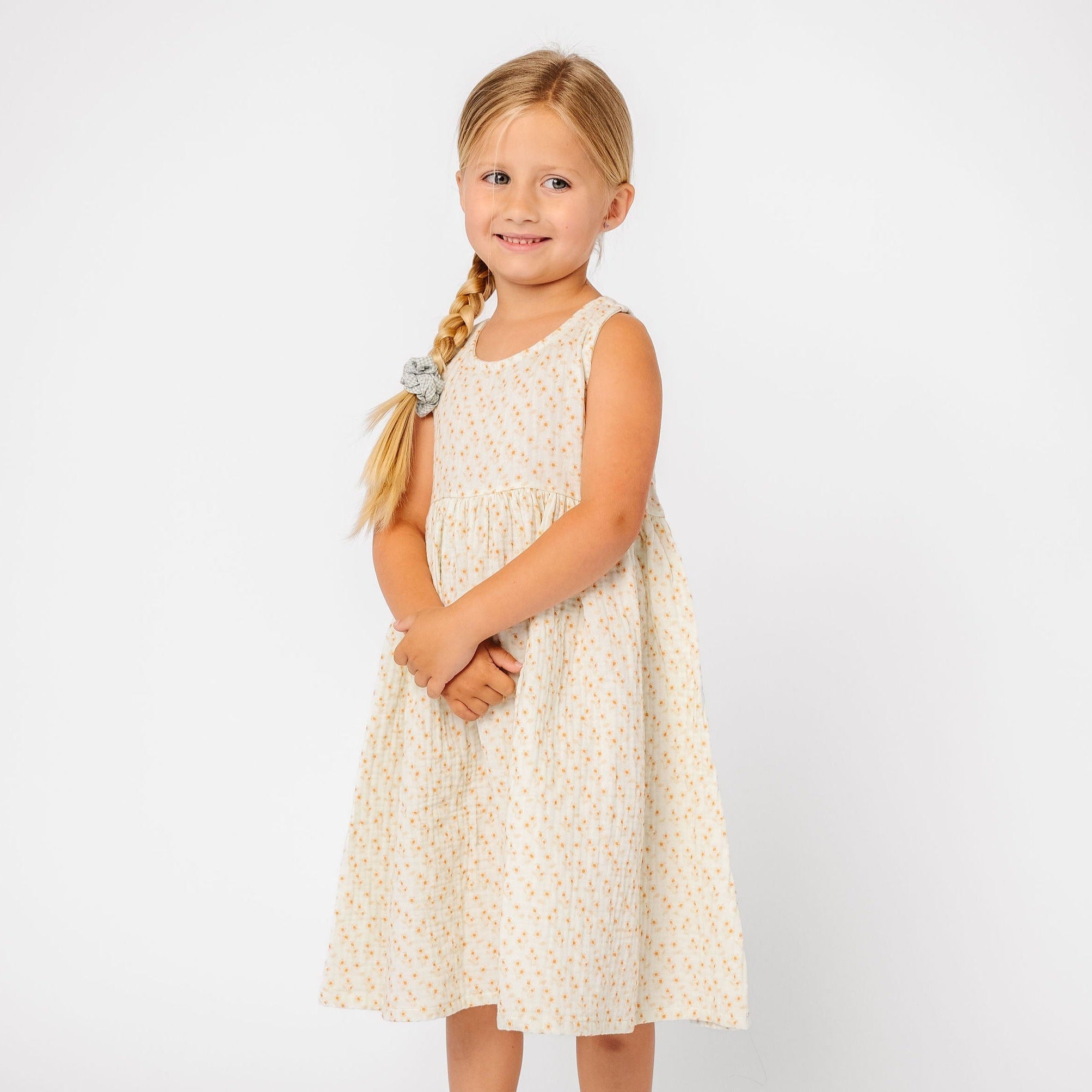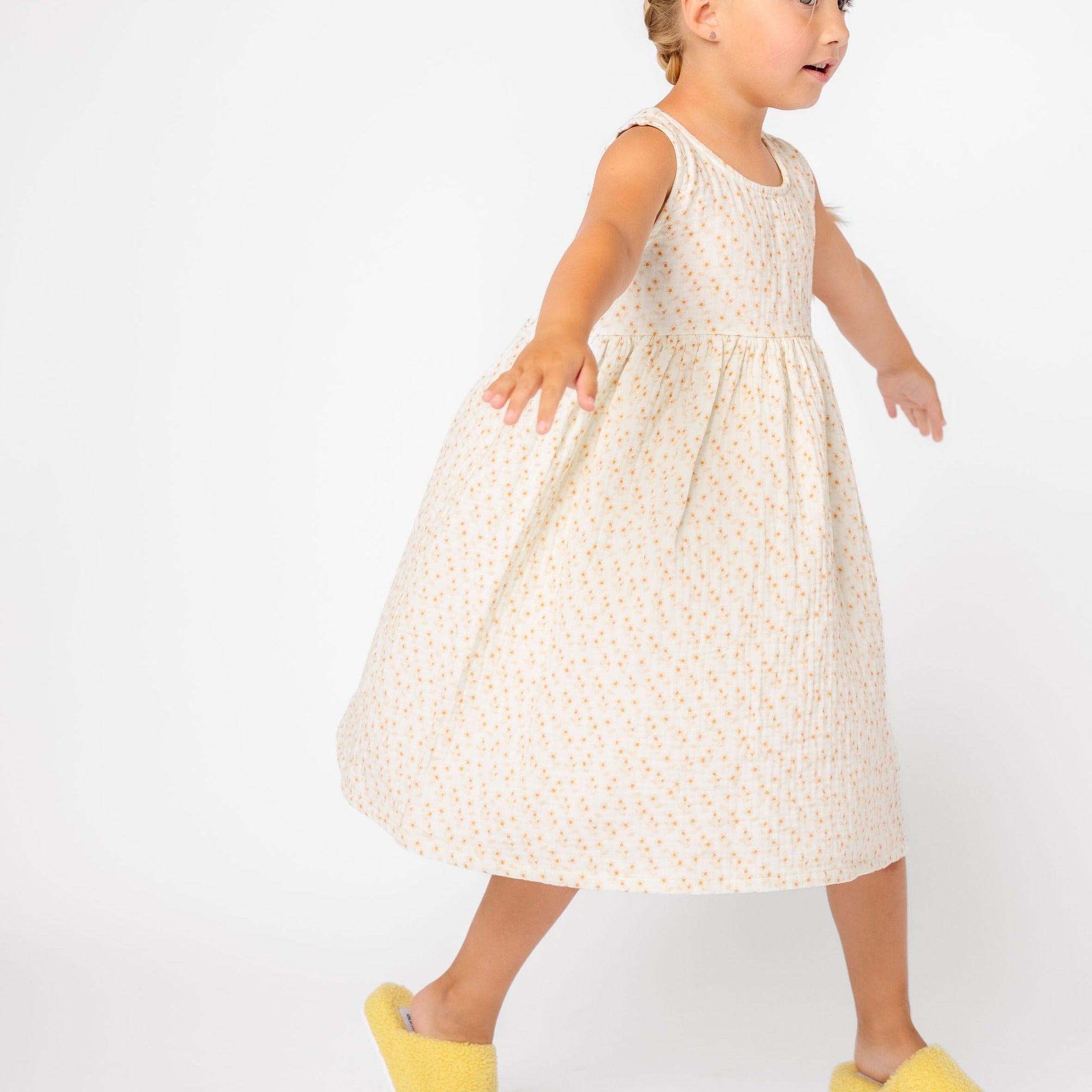 Cotton gauze combines with a snap-closure back for a dress that is as unique as your little one. Playdates and picnics can't be too far behind.