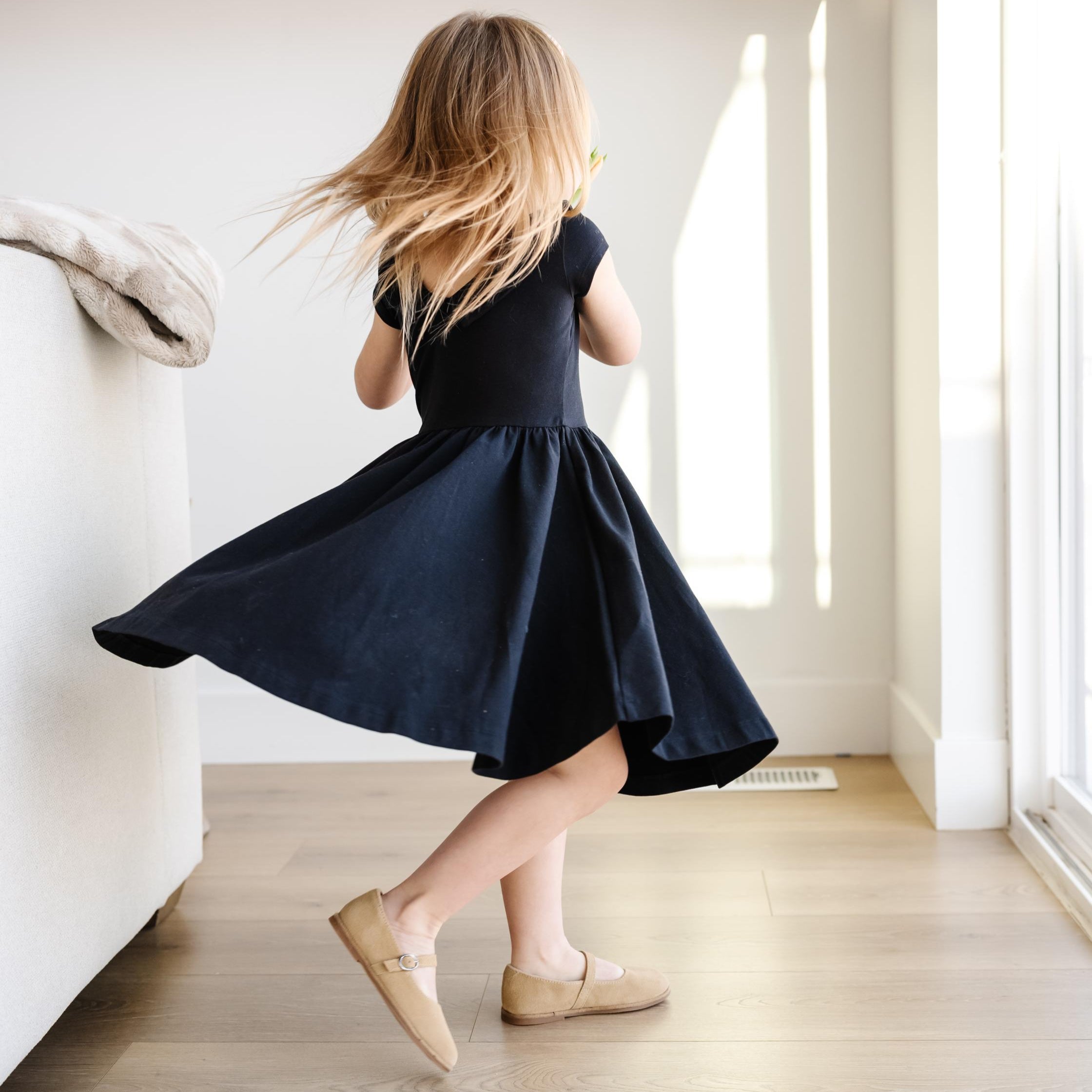 The dress that started it all, now with the cutest Peter Pan collar. Our signature stretchy-soft fabric, circle skirt, and scooped back becomes an instant staple in her closet.