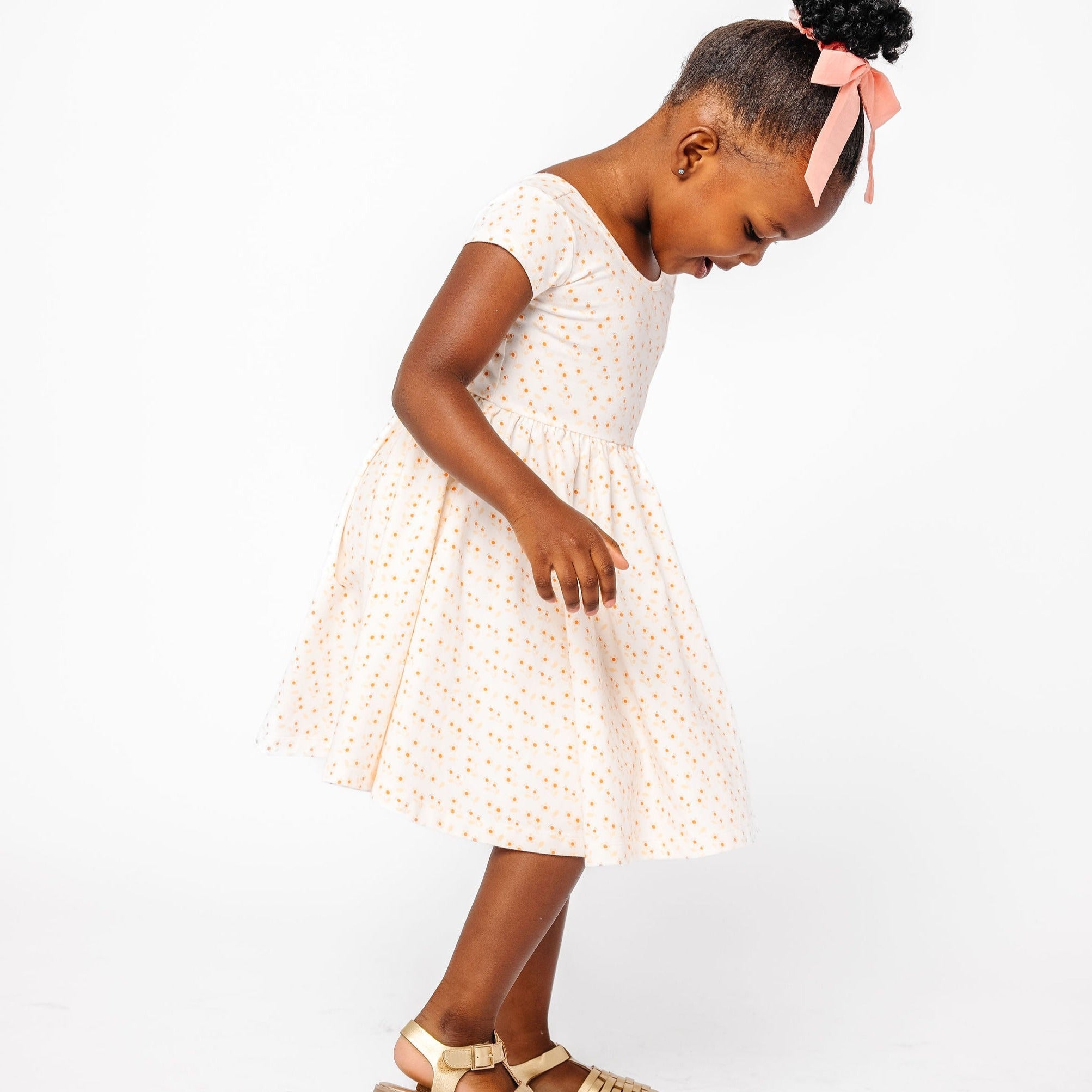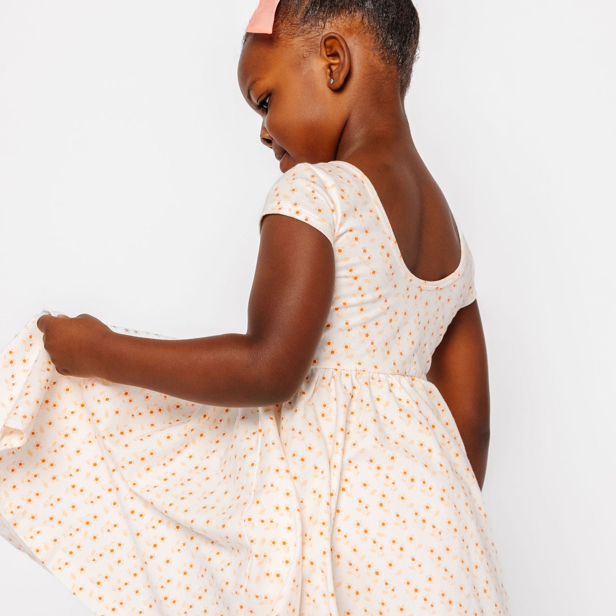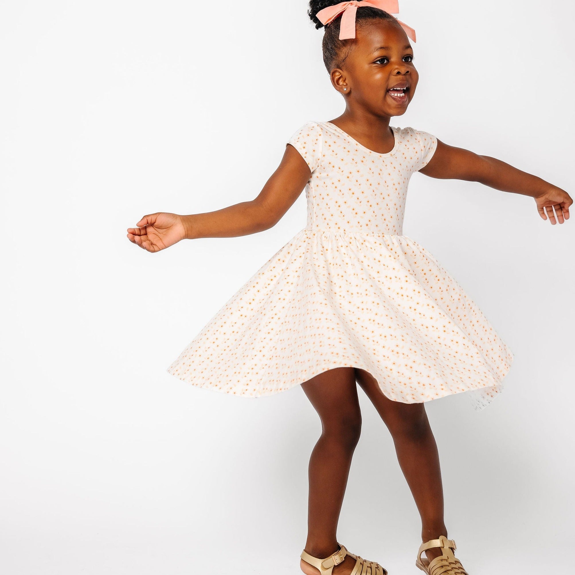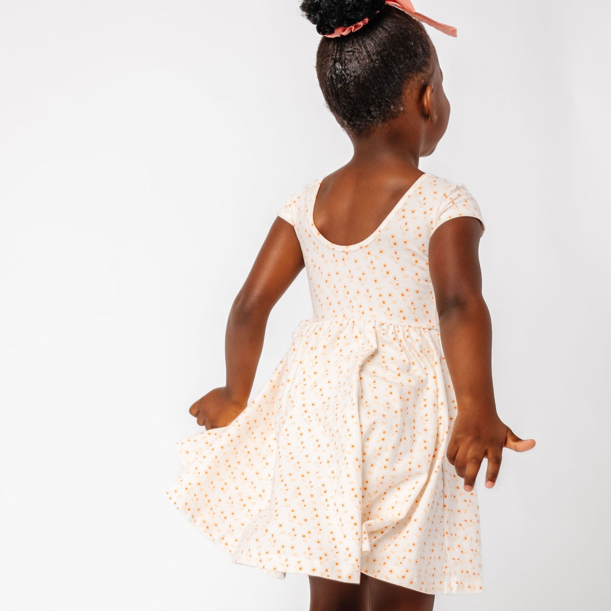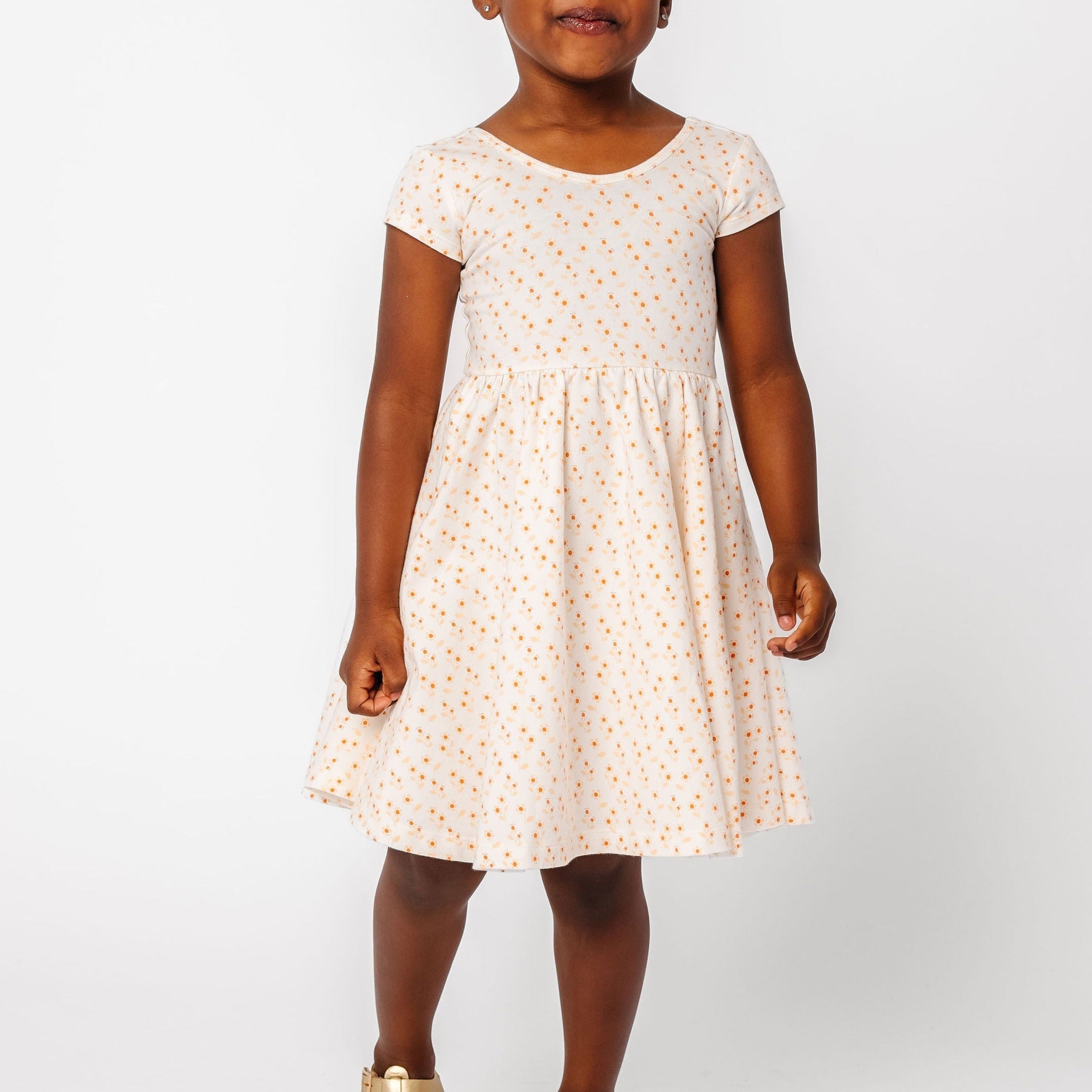 The dress that started it all because of its famous twirl‚ but with a shorter, flowy sleeve for summer time. Our signature stretchy-soft fabric, circle skirt, and scooped back will become an instant staple in her closet.