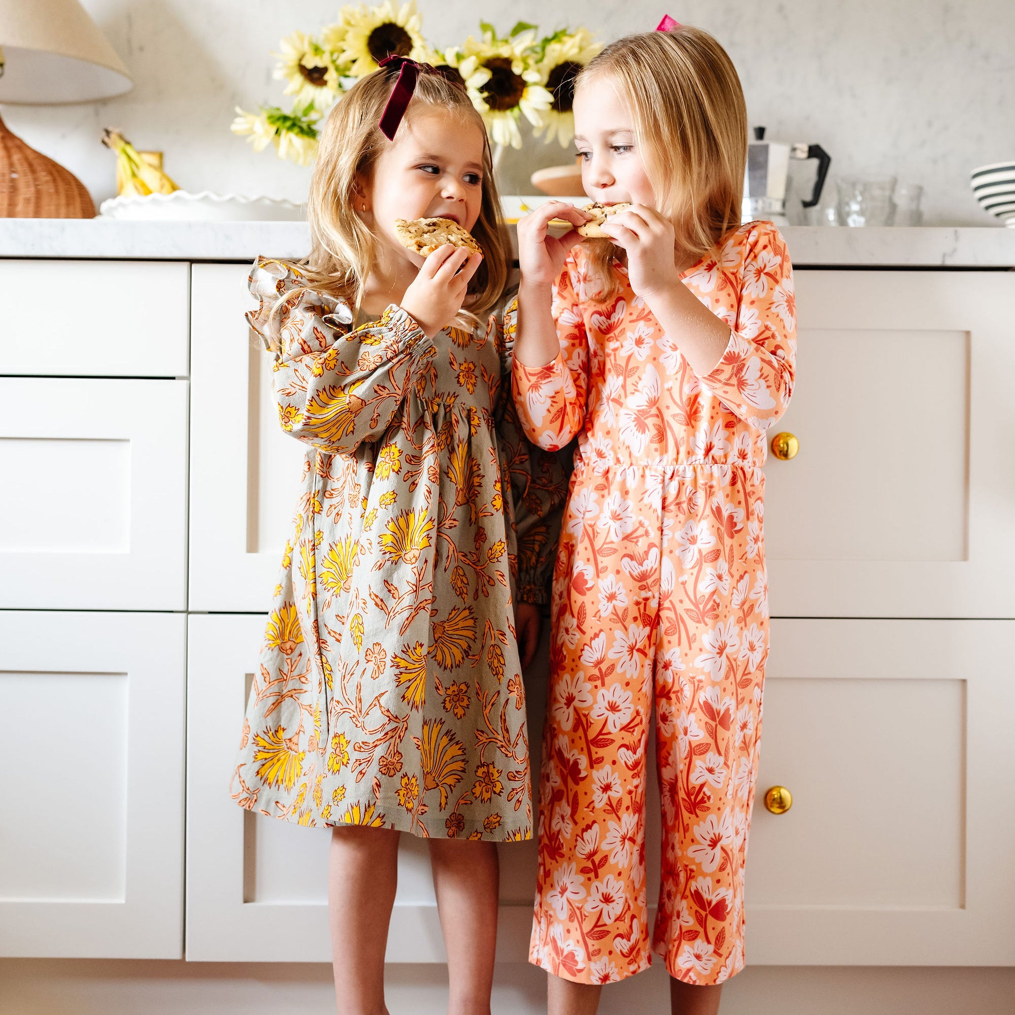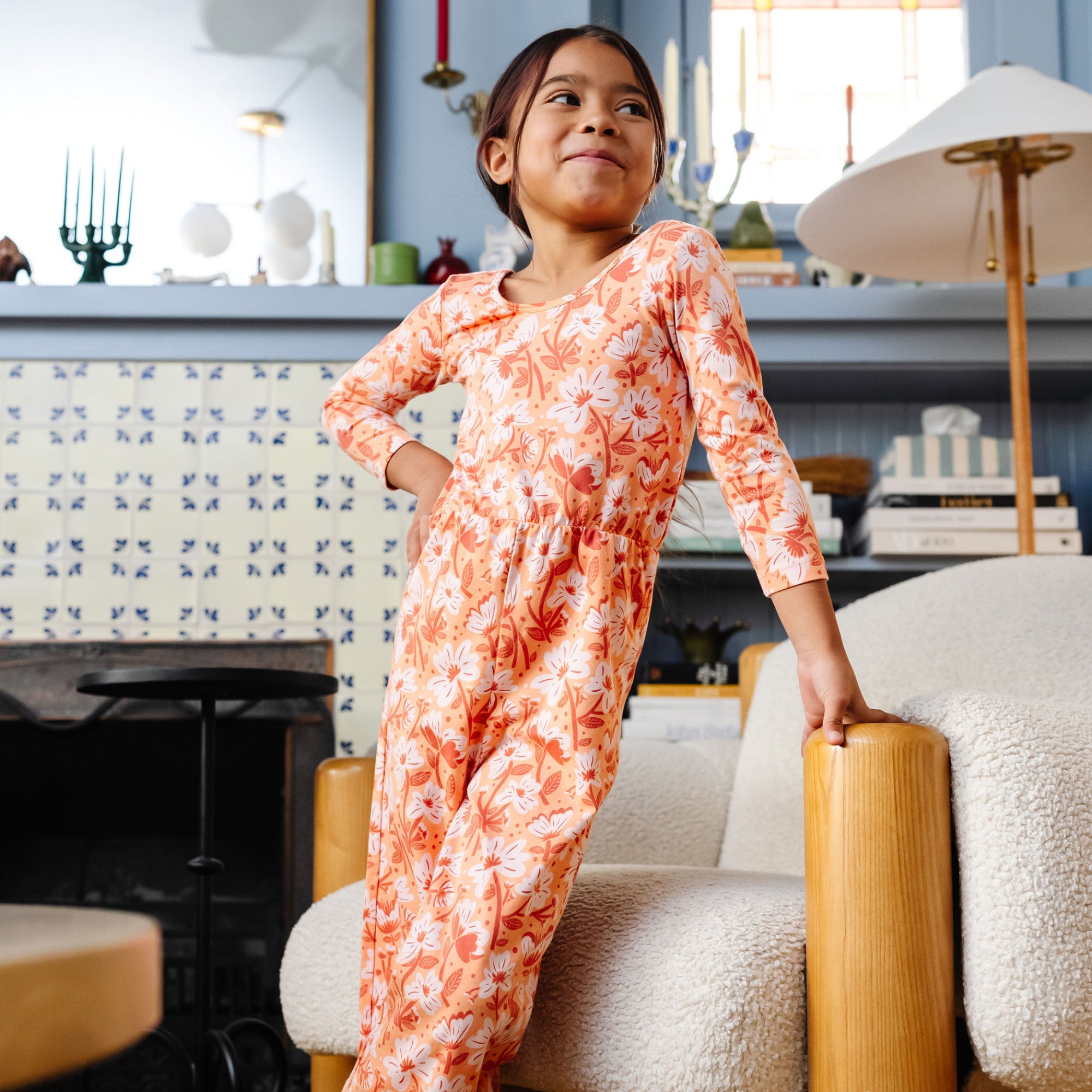 Calling all monkey bar lovers! This jumpsuit is for you. Featuring our signature low scoop back for easy slip-on, a comfy elastic waistline, and custom printed fabric using our favorite cozy cotton stretch. Pair with some classic rain boots, or pair with bare feet, there's really no wrong way to wear the jumpsuit.