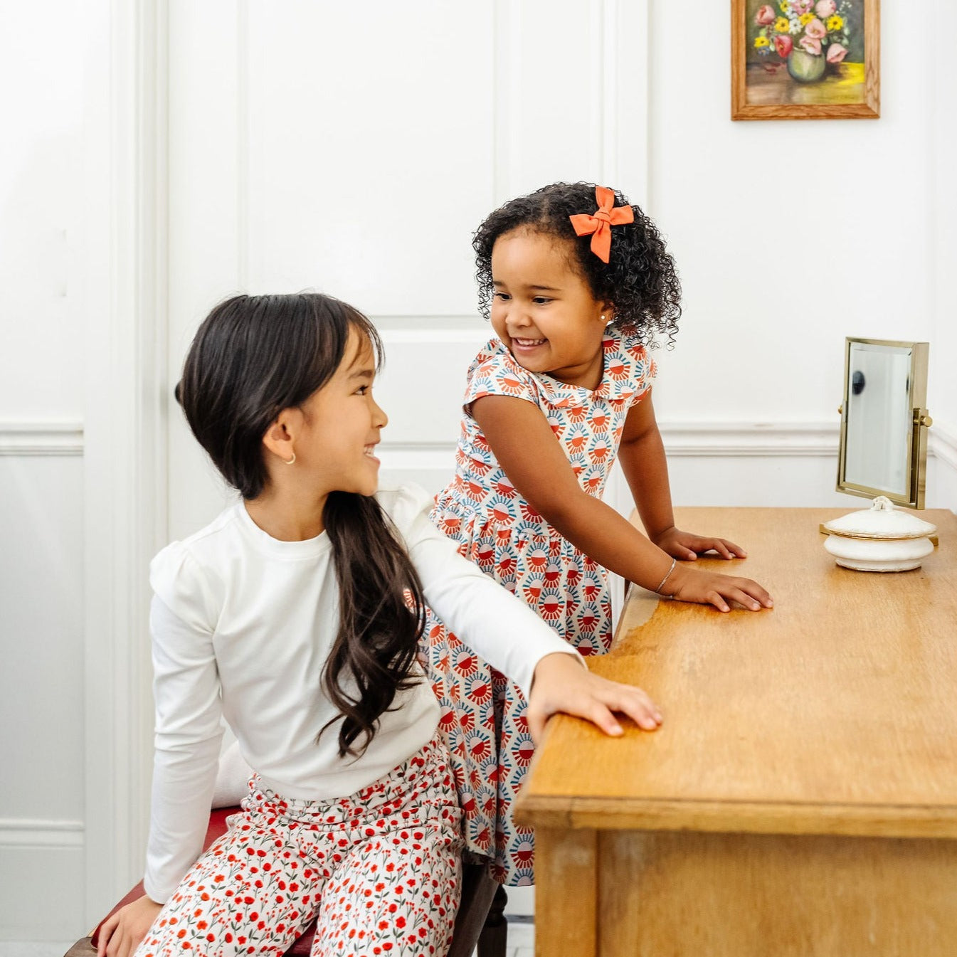 The key to layering is starting with a great foundation. Our new long-sleeved crewneck tee is snug, comfy, and pairs perfectly with a sweater or vest. Bonus: Its long enough to tuck into pants or a skirt!