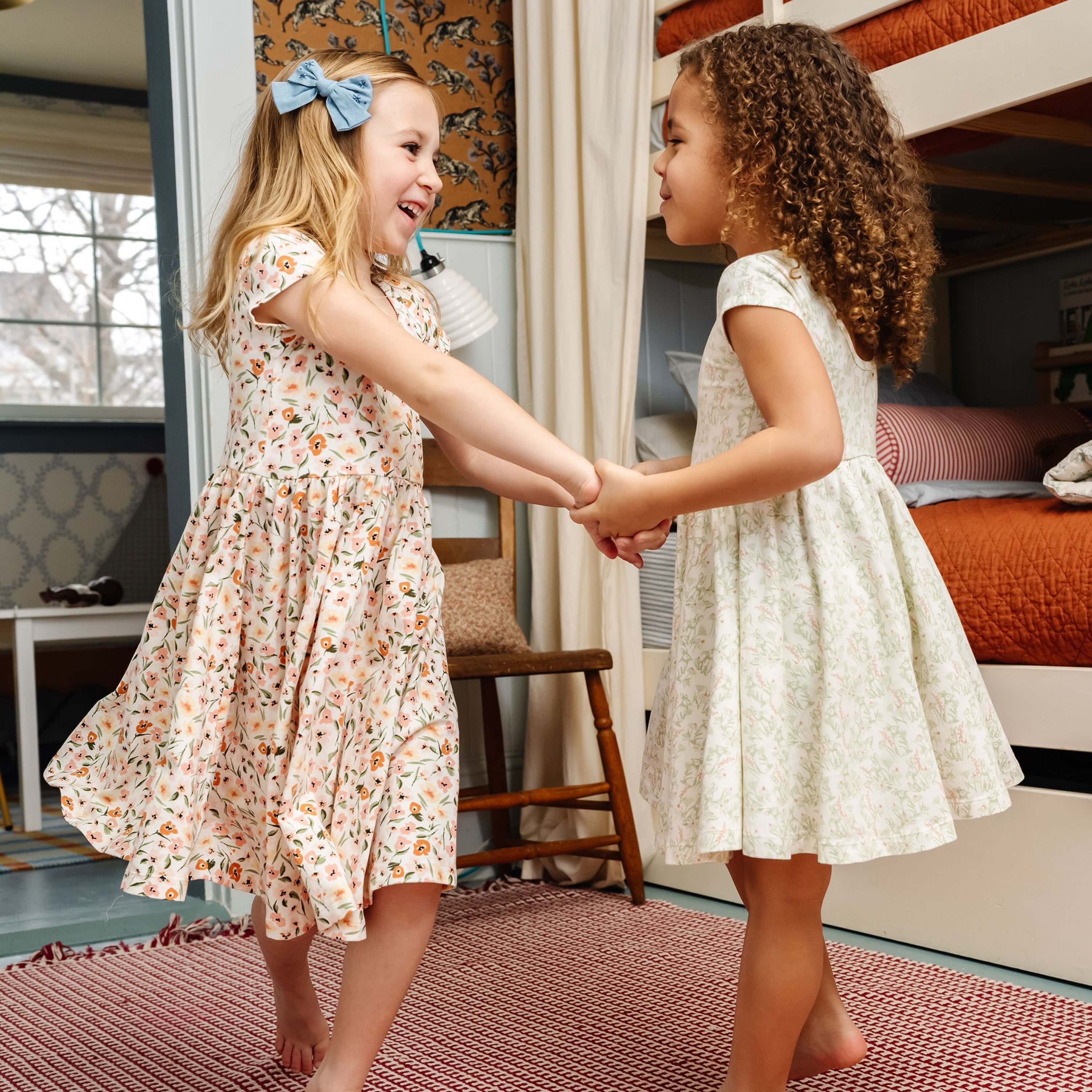 The dress that started it all because of its famous twirl but with a shorter, flowy sleeve for summer time. Our signature stretchy-soft fabric, circle skirt, and scooped back will become an instant staple in her closet.