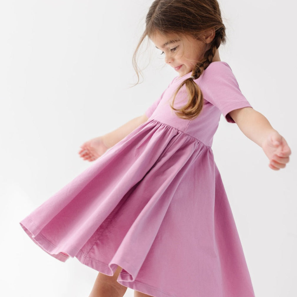 The dress that started it all because of its famous twirl. Our signature stretchy-soft fabric, circle skirt, and scooped back becomes an instant staple in her closet.