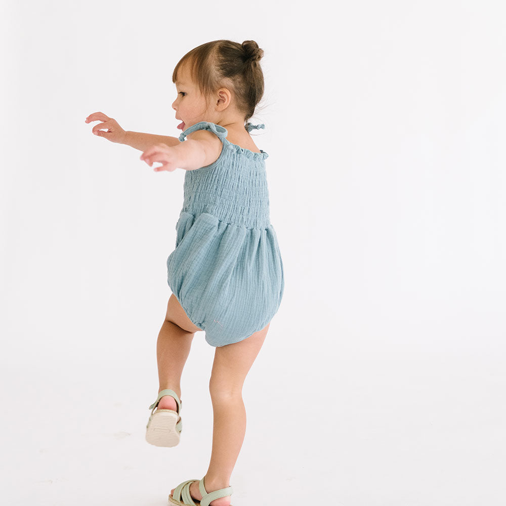 The Smocked Onesie in Aegean Blue