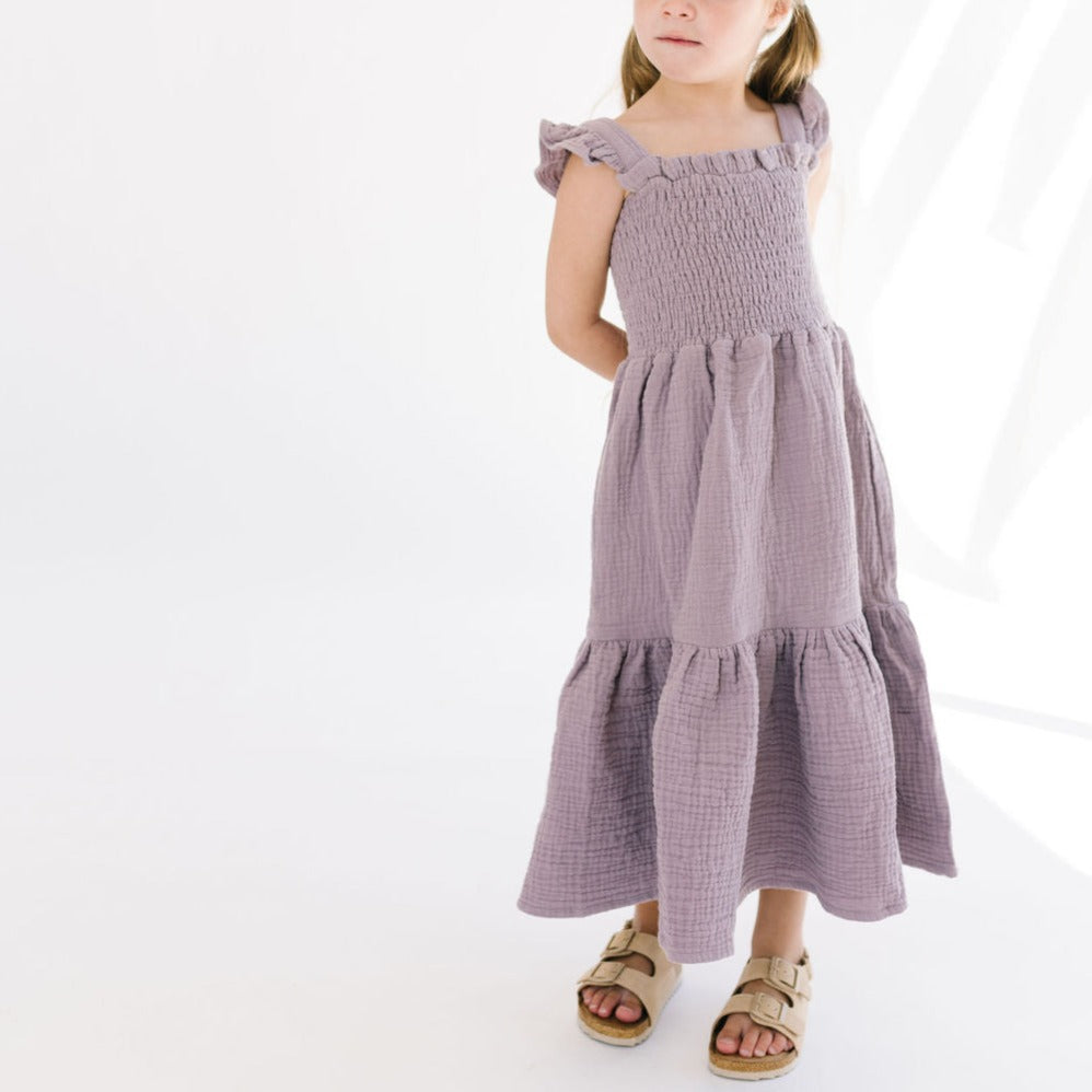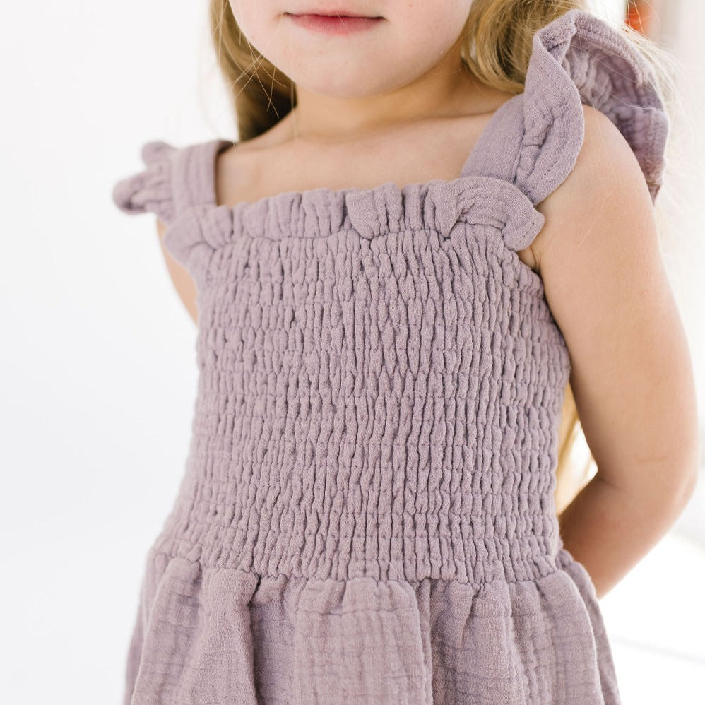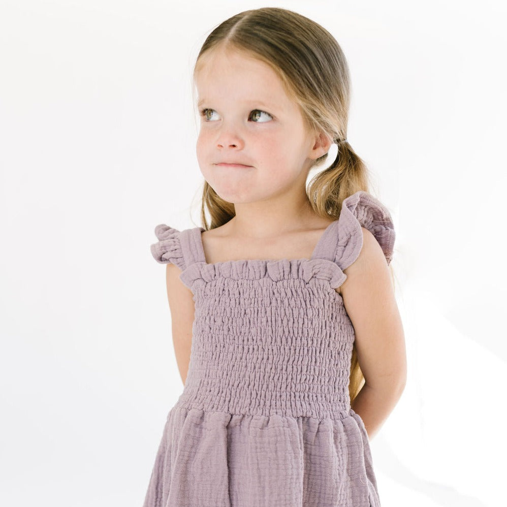 This dress is your summer wardrobe's answer to easy-breezy style! Featuring a smocked bodice, flutter sleeves, and a tiered skirt made of 100% cotton gauze, the Smocked Dress will have her ready to hit the beach, park, lunch spot, or even just the couch in no time.