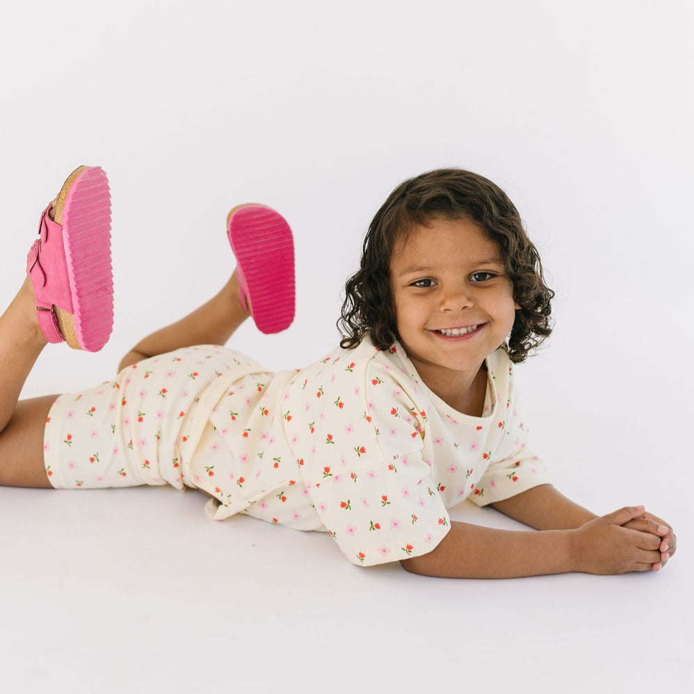 Achieve the perfect summer look with the Spring Play Set! This two-piece set is made of 100% cotton, with a short sleeve top and fitted shorts to keep them feeling comfy and looking cute!
