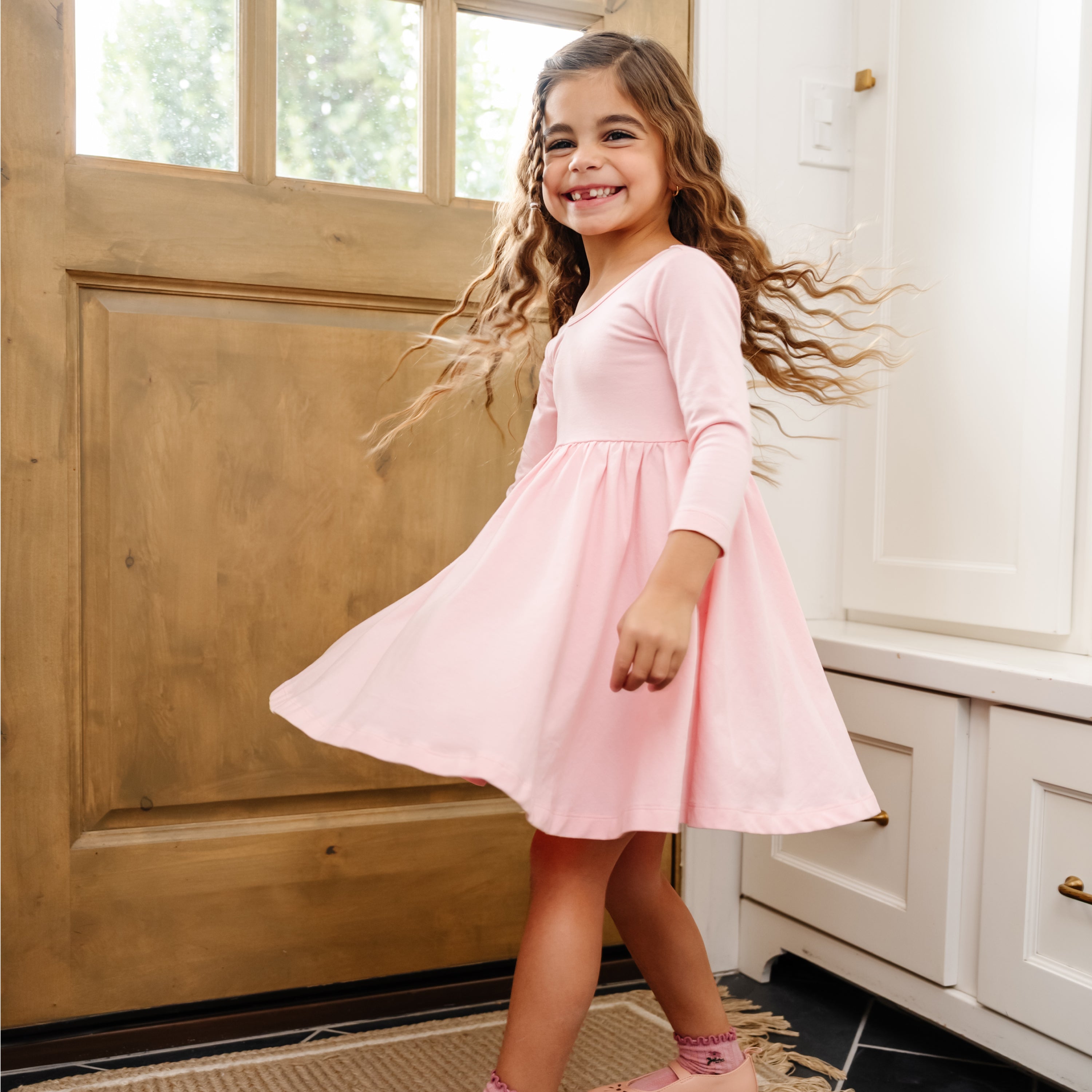 The dress that started it all. Our signature stretchy-soft fabric, circle skirt, and scooped back becomes an instant staple in her closet.